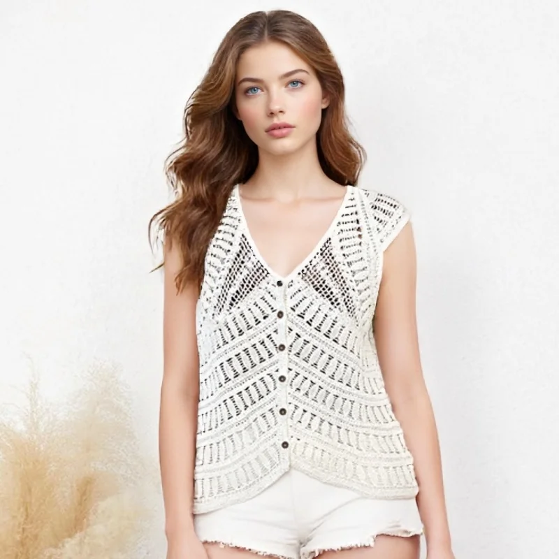 Early Autumn Summer Casual Handmade Knitted Cotton Layered Short Cardigan Anti-Pilling O-Neck Women Vest