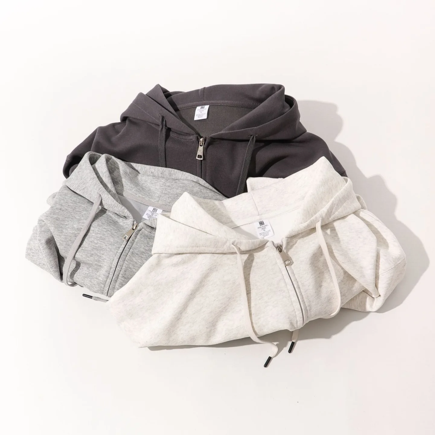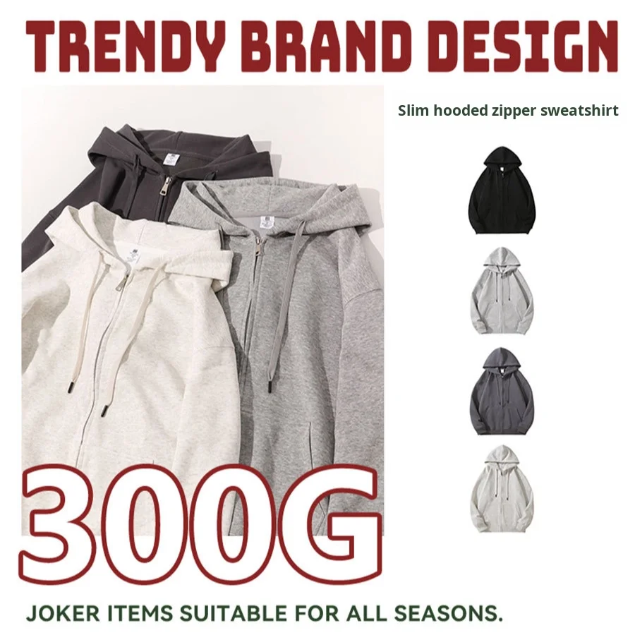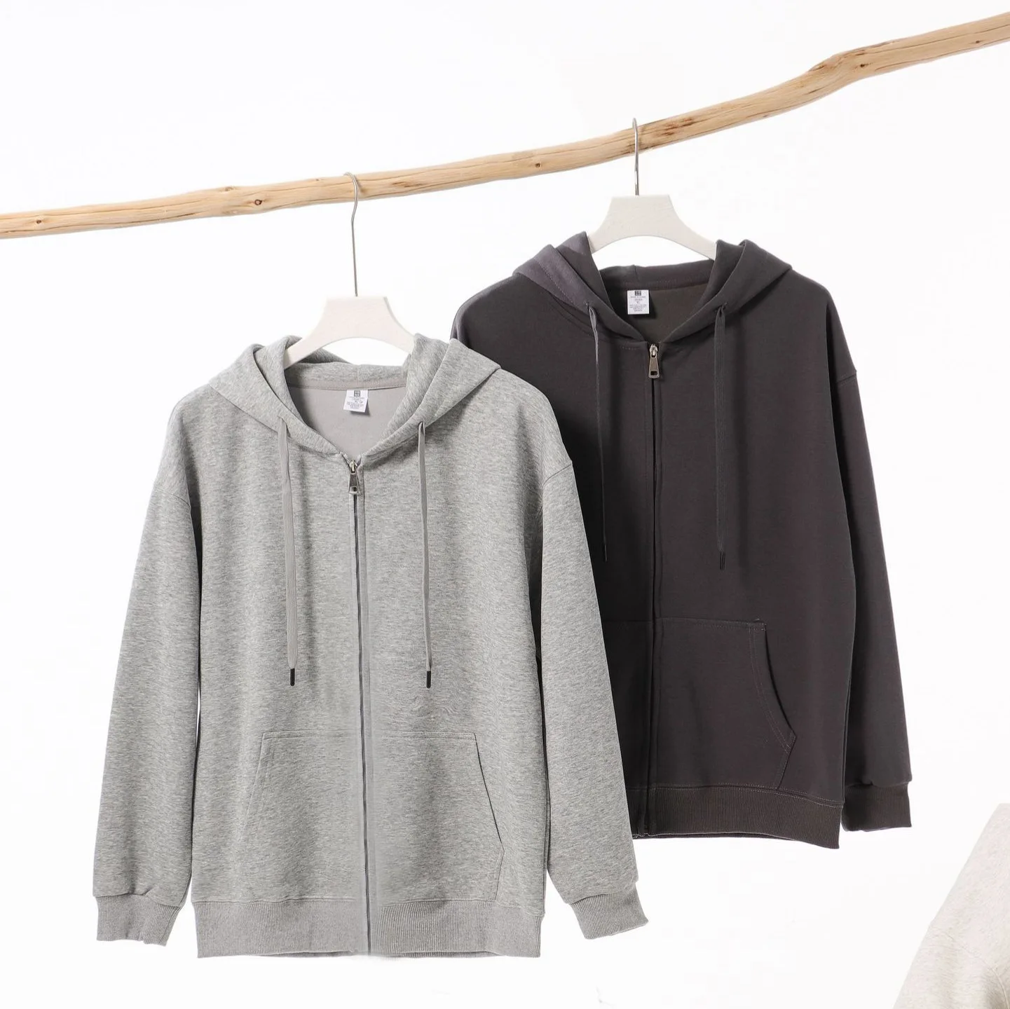 Wholesale Autumn Winter Men's Trendy Casual Cardigan Jacket 300g Cotton Blend Solid Men's Hoodid