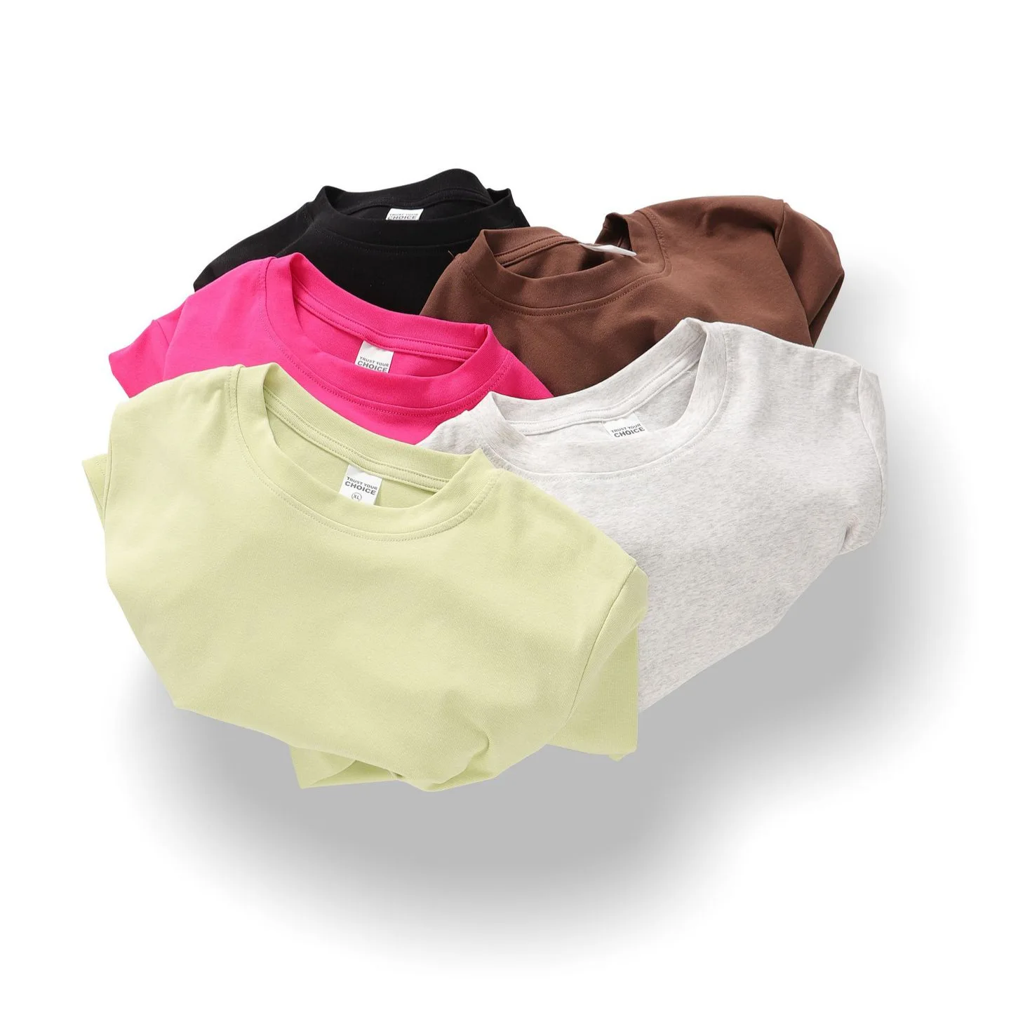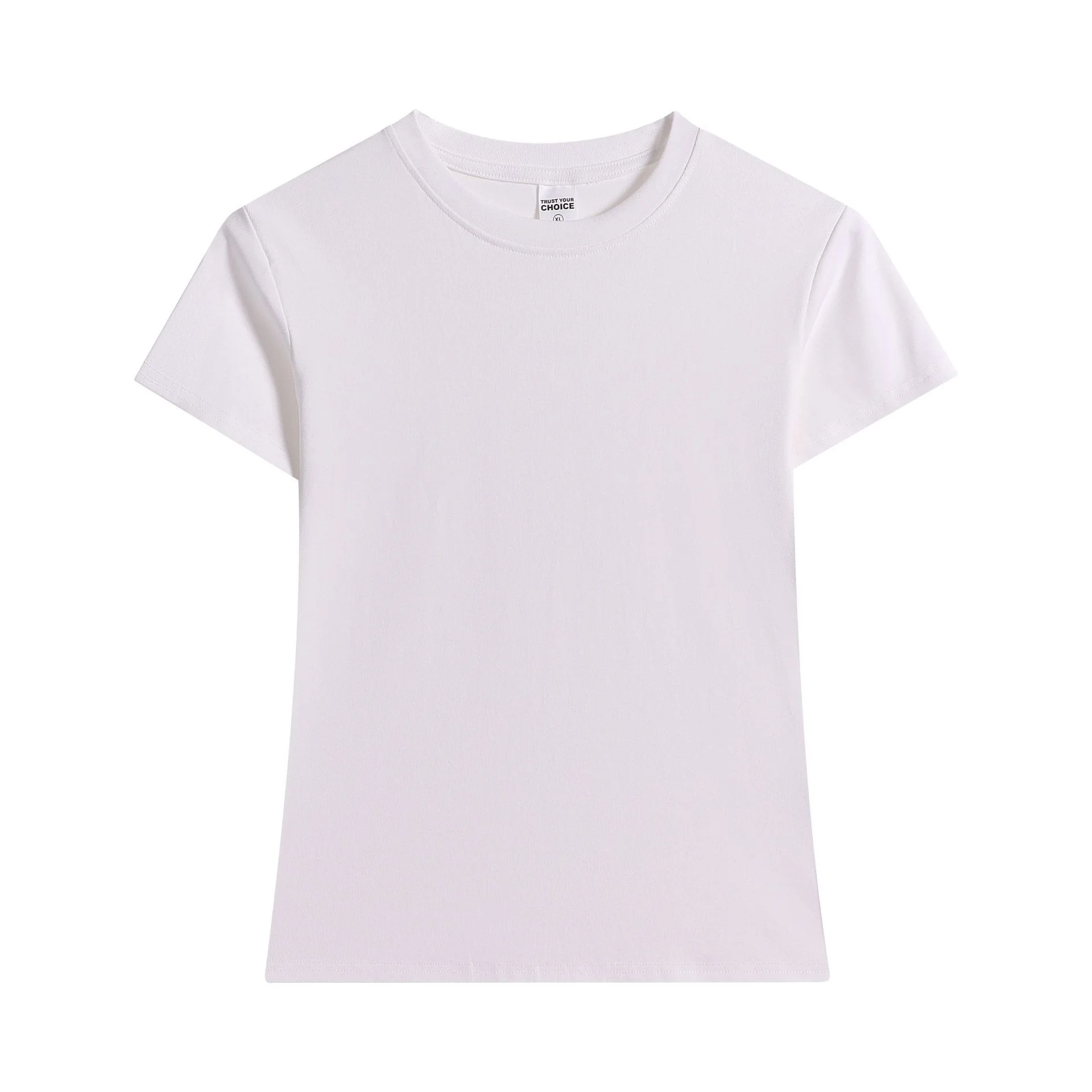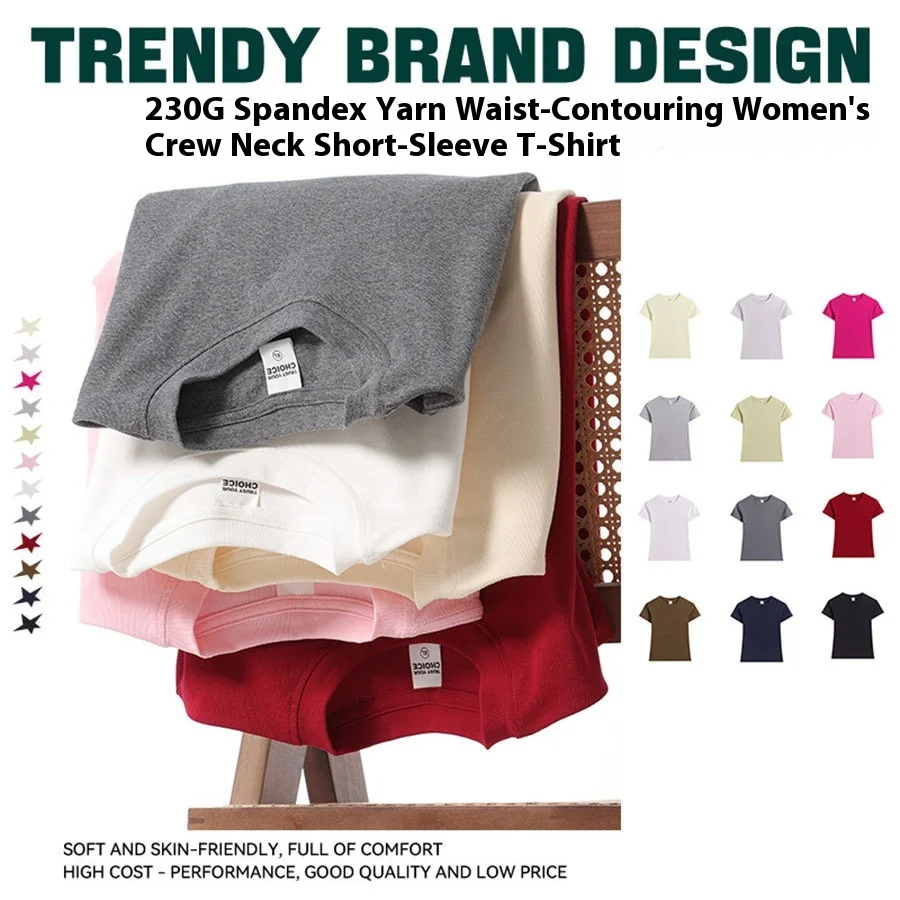 Summer French Style Short Sleeve Knitted Eco-Friendly 230G Waist-Cinching Neck Solid Color Slimming Regular Women's T-Shirt