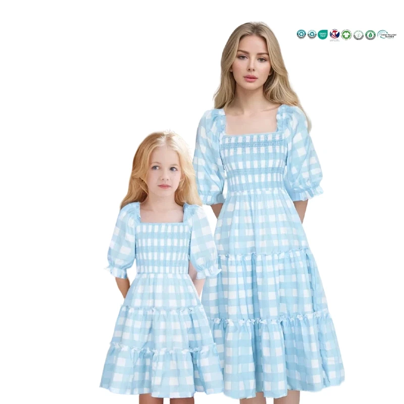 Summer Girls Children Clothing Parent Child Printed Floral Mother Daughter Dress Sisters Short Sleeve Long Skirt Casual Family