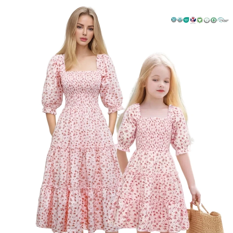 Casual Floral Family Clothing Summer Outfits Mommy and Me Dresses for Children & Girls Short Sleeve Breathable & Eco-Friendly