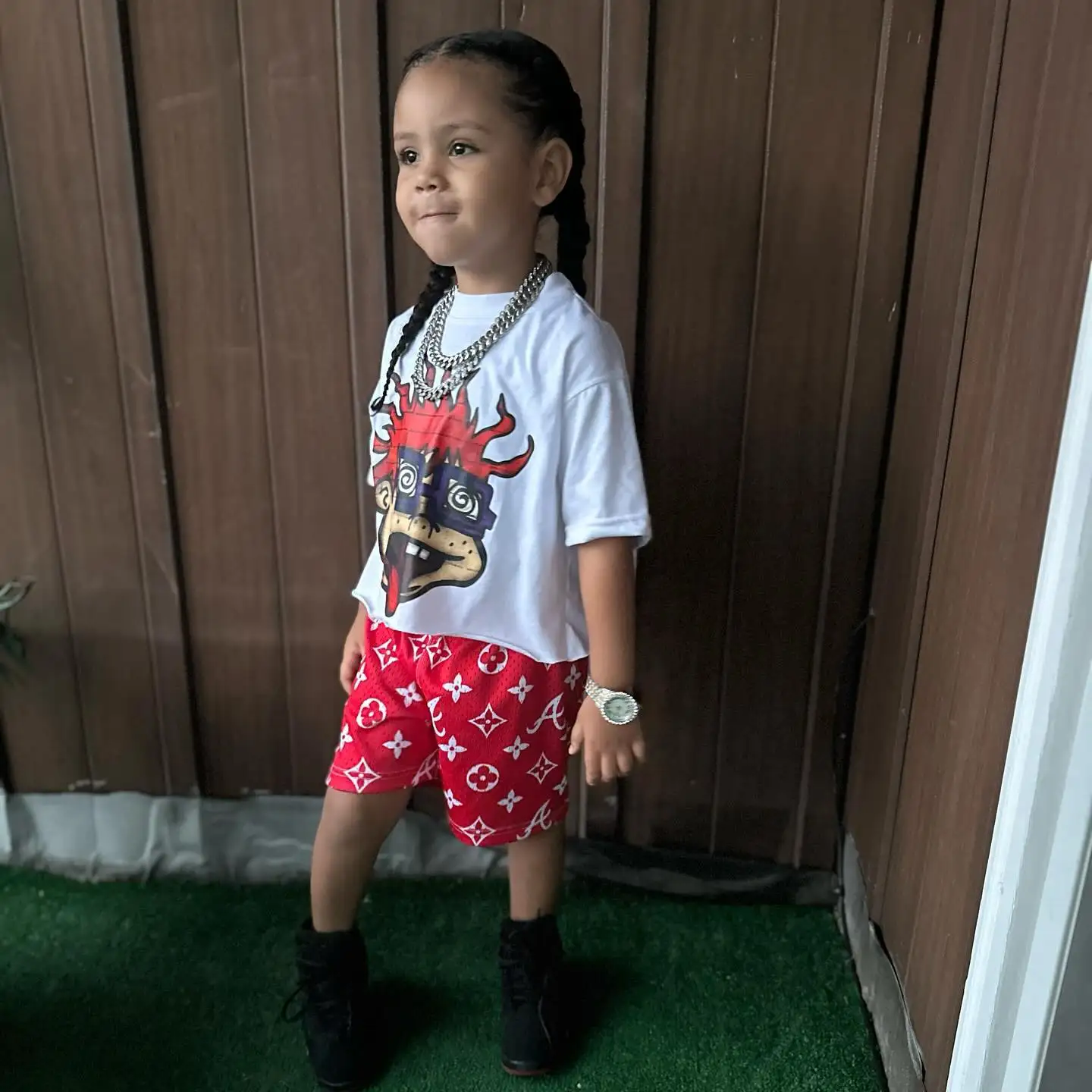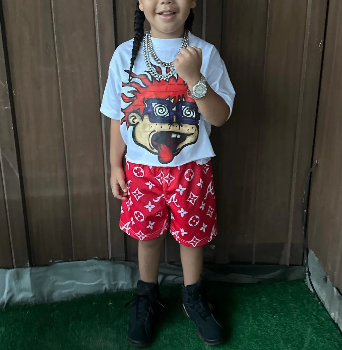 High Quality Boxy Oversized Streetwear T-Shirt Custom Screen Print Heavy Cotton Cropped Graphic Shorts Set Summer Toddler Girls