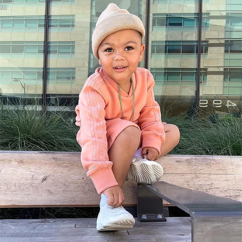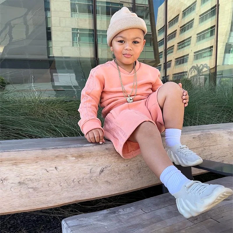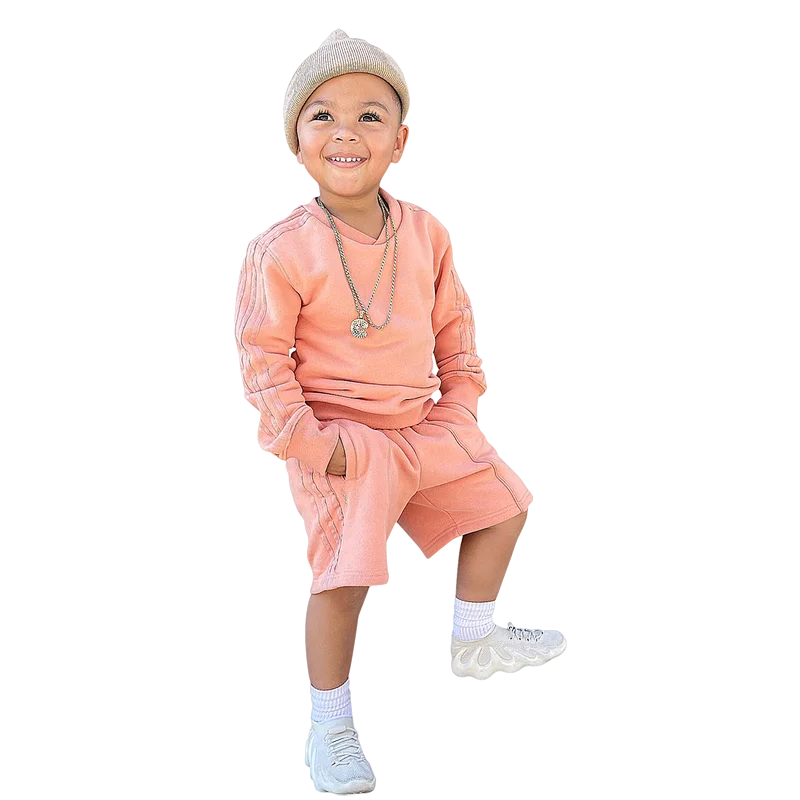 New Design Custom Brand Logo Autumn Solid French Terry Jumper Shorts Sweat Suit 2 Piece Kids Set