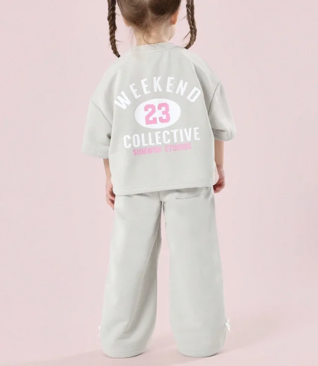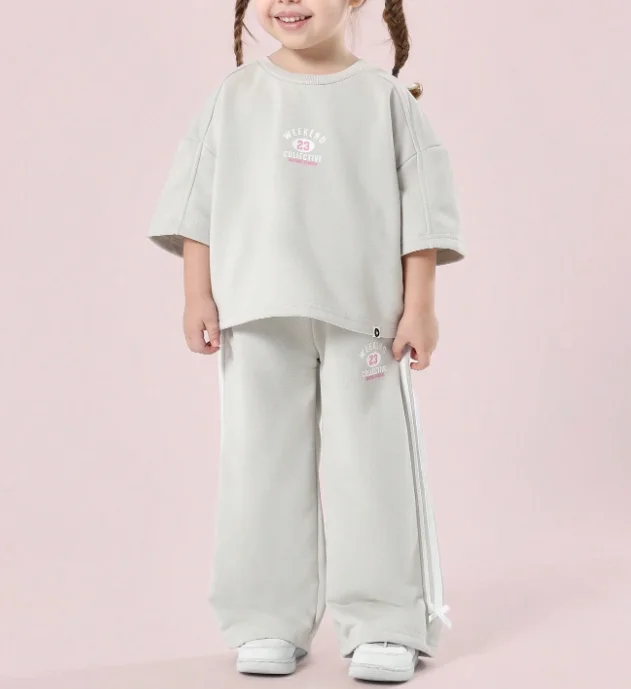 High Quality Custom 100% Cotton Kids Short Sleeve T-shirt Wide Leg Trousers Home Suit Casual Girls Clothing Set
