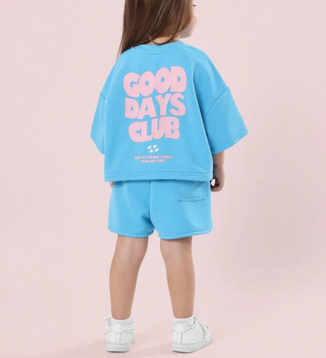 Custom Logo Toddler Baby Girls Clothes Short Sleeve T-Shirt and Short Set Kids Summer Solid 2pcs Outfits Clothing Set