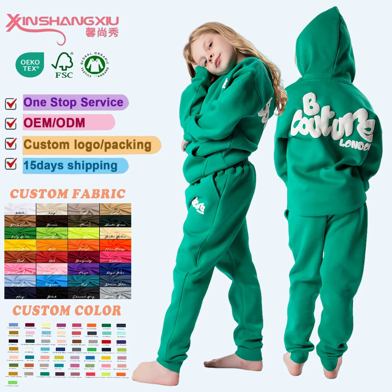 Kids Unisex Clothing Sets Oversized Puff Print Hooded Sweatsuits Custom Logo Sizes Children's Tracksuit Jogger Set