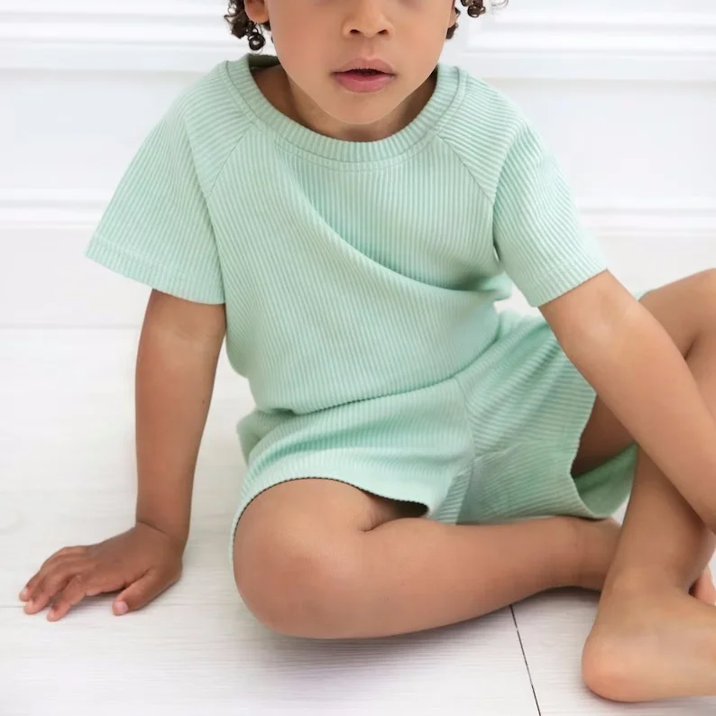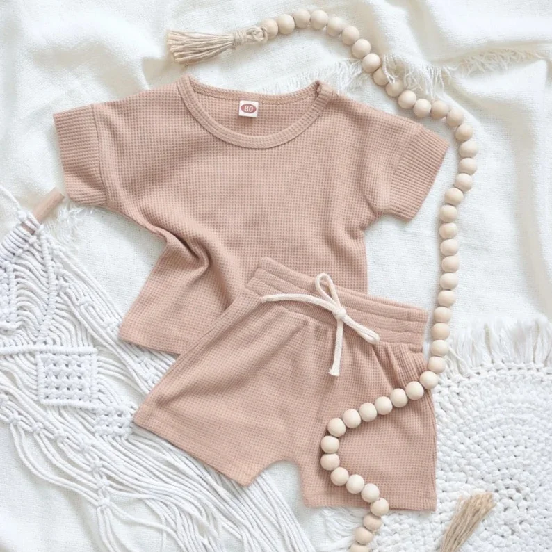 Summer Boy Girl Clothes High Quality Unisex Walff Cotton Oversize T Shirt Shorts Set Custom Kids Clothing