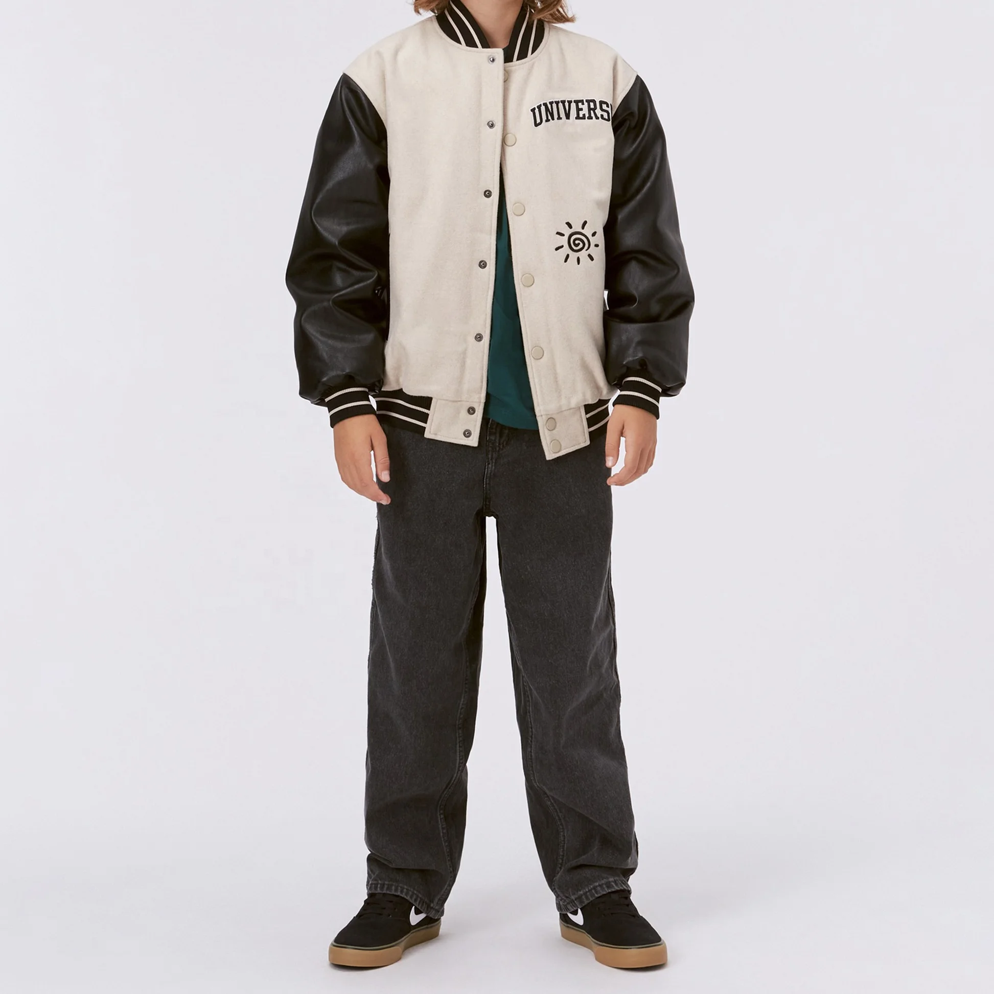 High Quality Wool-Blend Leather Sleeves Embroidery Varsity Jacket for Boys