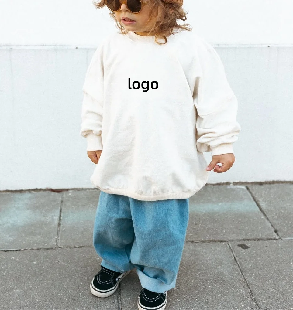 Custom logo Kids Clothing Children Clothes Boys Two Piece Sweatshirt and Denim Pants Children's Clothing Set