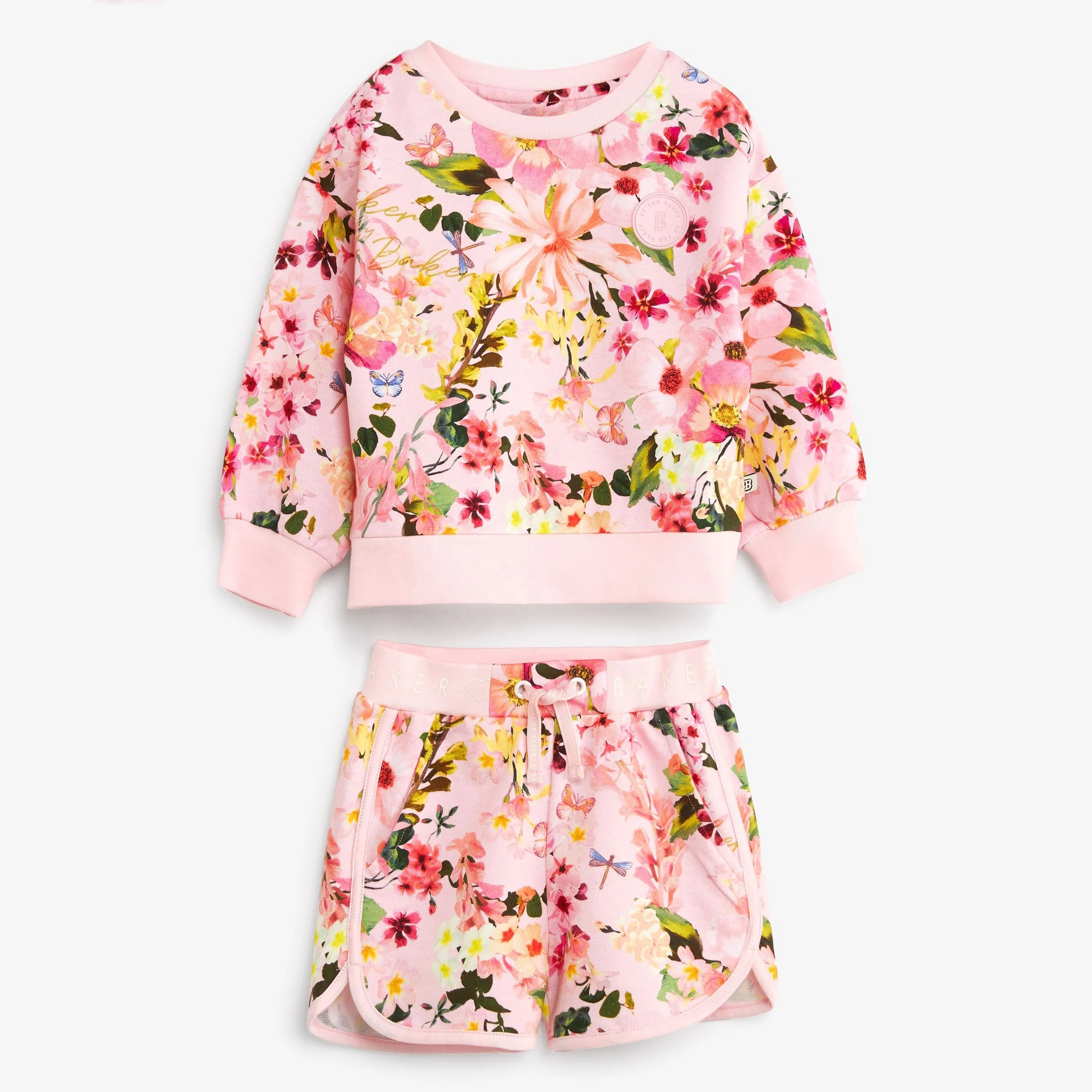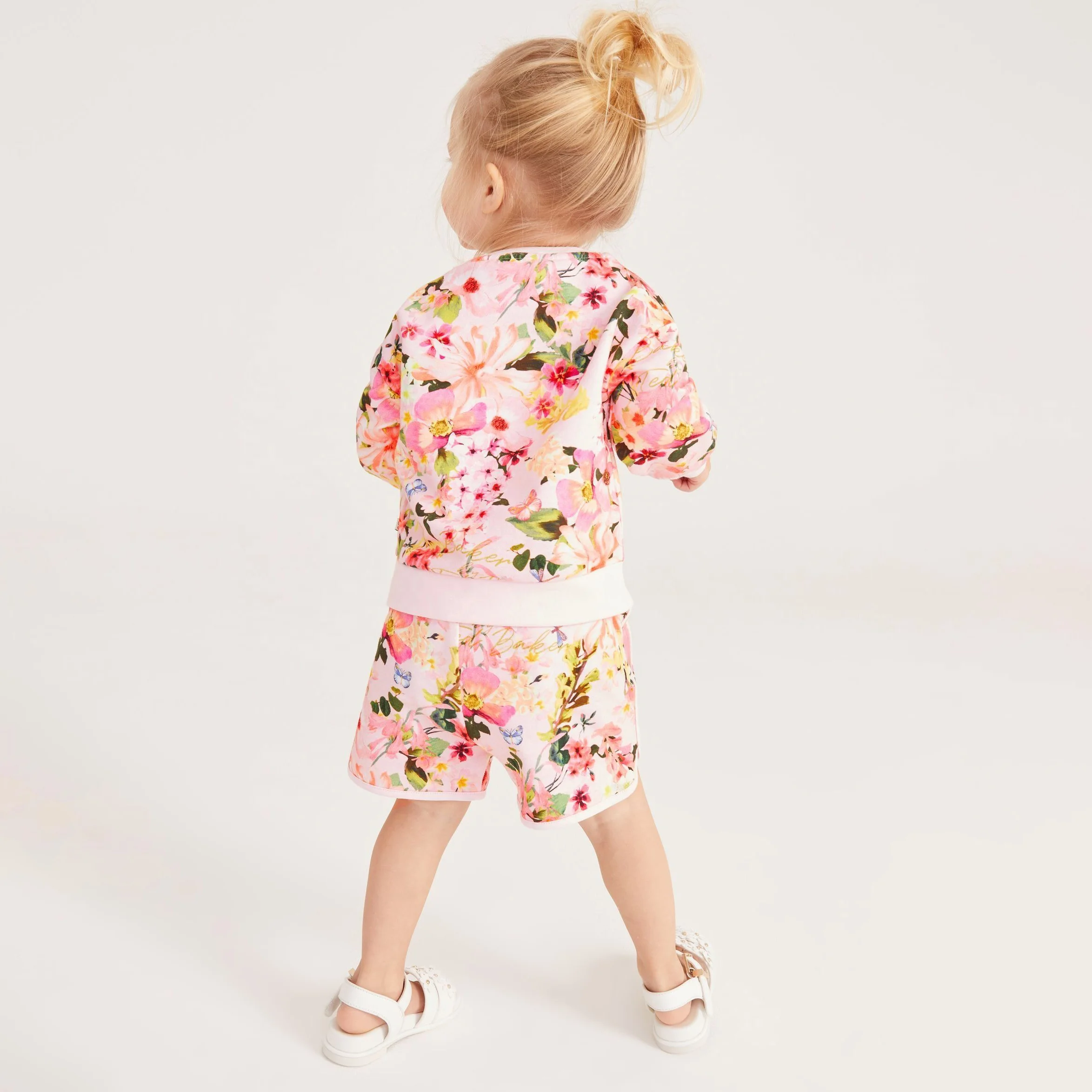 Wholesale All Over Floral Print Cotton Fleece Sweatshirt Shorts Set Baby Kids Clothes Sets Tracksuit