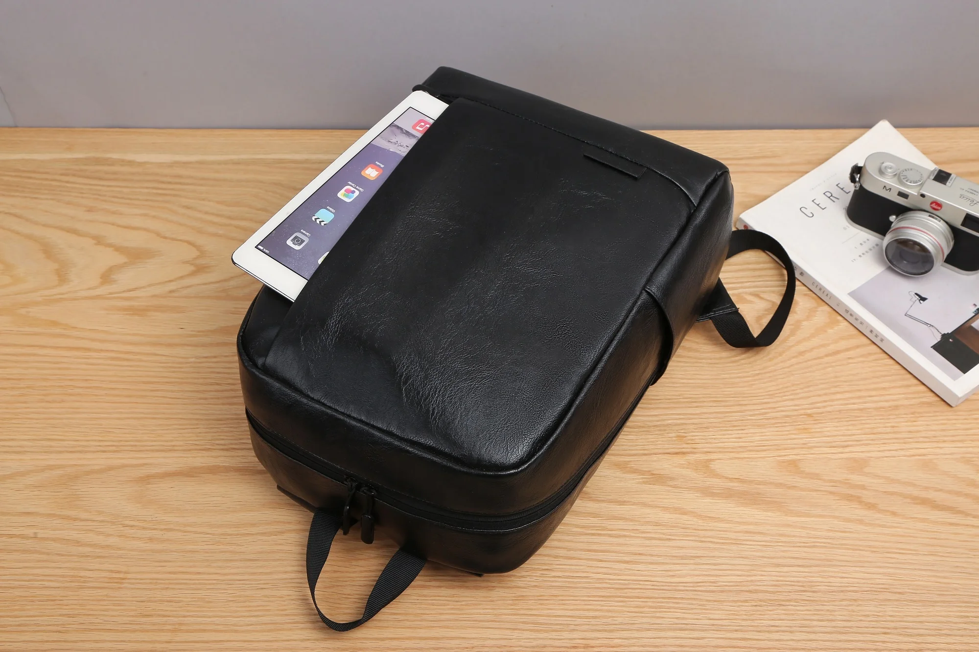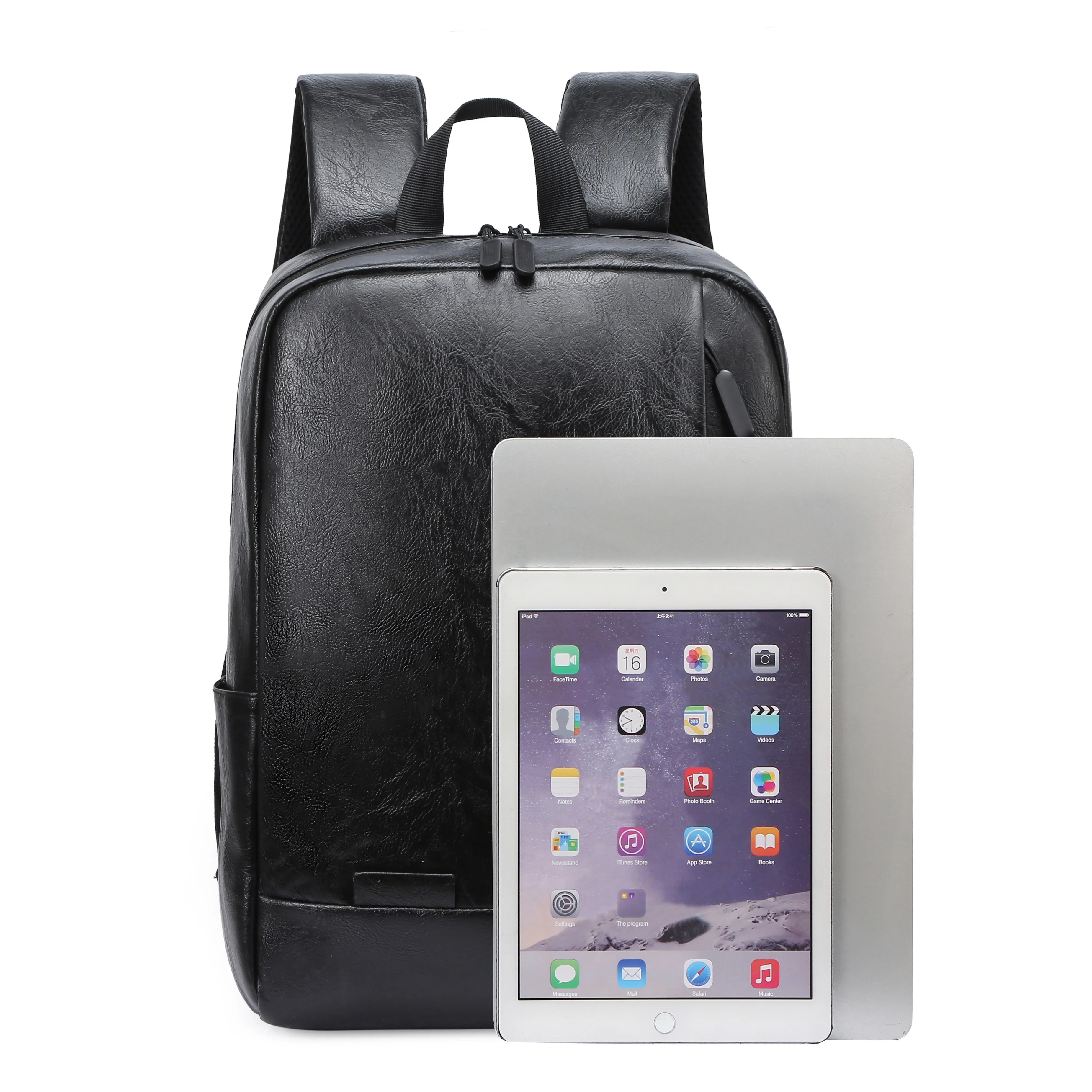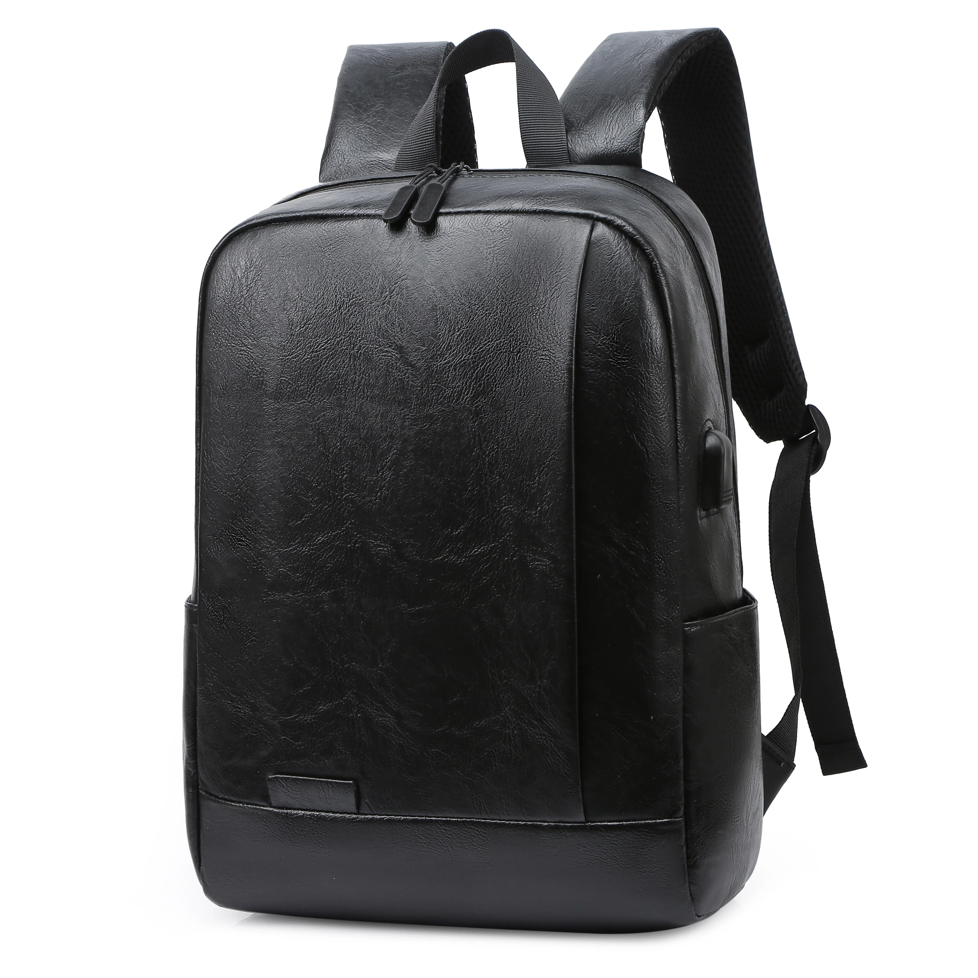 Popular Droshiping Retro Style Black Leather Backpack Bag Men's PU Leather Laptop Backpacks