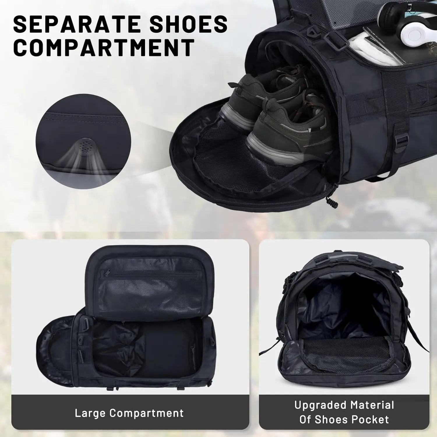 Black High Quality Customization Portable Backpack Camp Hiking Men's Sport Fitness Gym Duffle Backpack Bag With Shoe Compartment