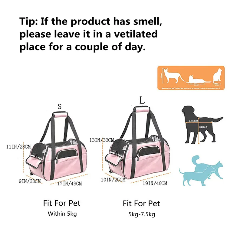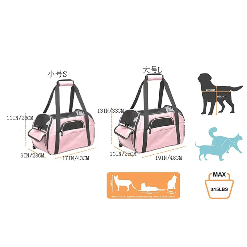 Portable Lightweight Solid Pattern PVC Outdoor Cage Oxford Zipper Closure Pet Carrier Bag for Small Pets
