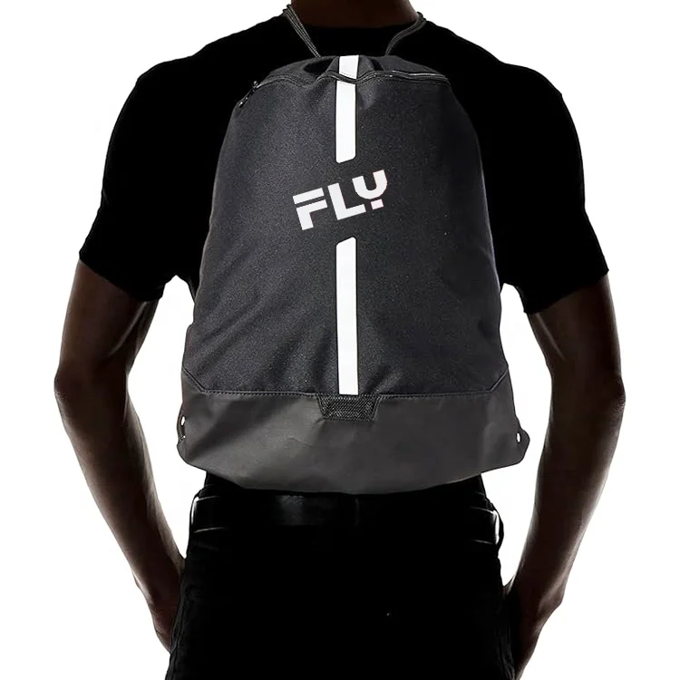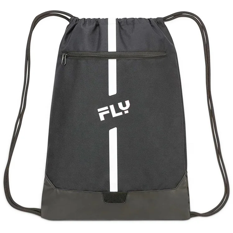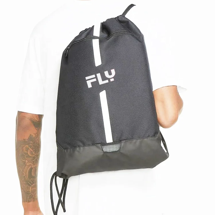 Swimming Gym Drawstring Basketball Bag with Zipper Pocket Cinch Sack String Backpack Black Nylon Sport Sack Pack for Men Sport