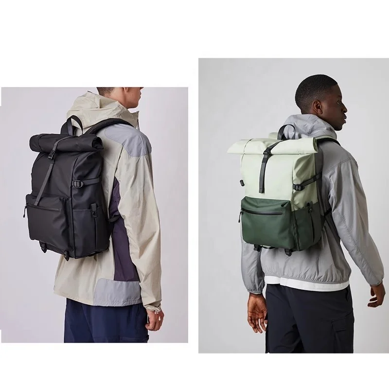 Custom Wholesale Waterproof Travel Business Weekly Work Laptop Rolling School Rolling Roll Top Daypack Rolltop Backpack for Men