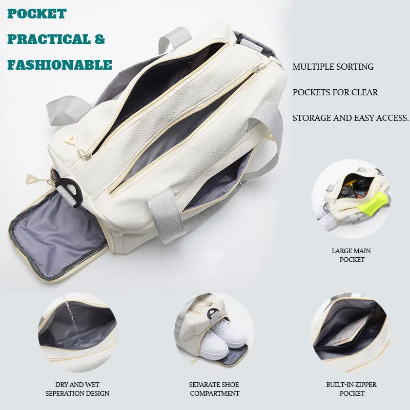 Lightweight Women's Nylon Gym Duffle Bag Large Capacity Waterproof Sports Bag Casual Style Portable for Dance Travel Yoga