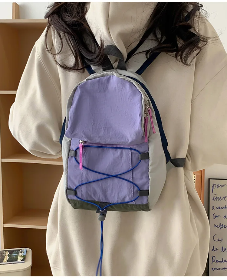 Lightweight Vintage Outdoor Backpack for Men Women Color-Block Hiking Picnic Travel Bag Small Thin Bag for Outdoor Activities