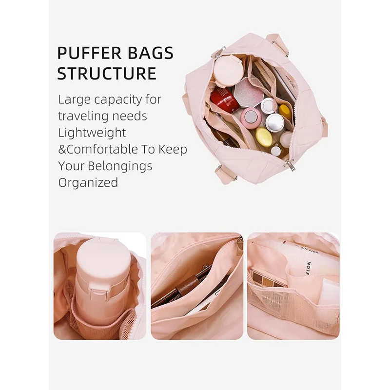 Customized Puffy Quilted 2 in 1 Mini Gym Bag with Coin Purse Set Sports Dance Yoga Tote Duffel Handbags Small Gym Bag for Women