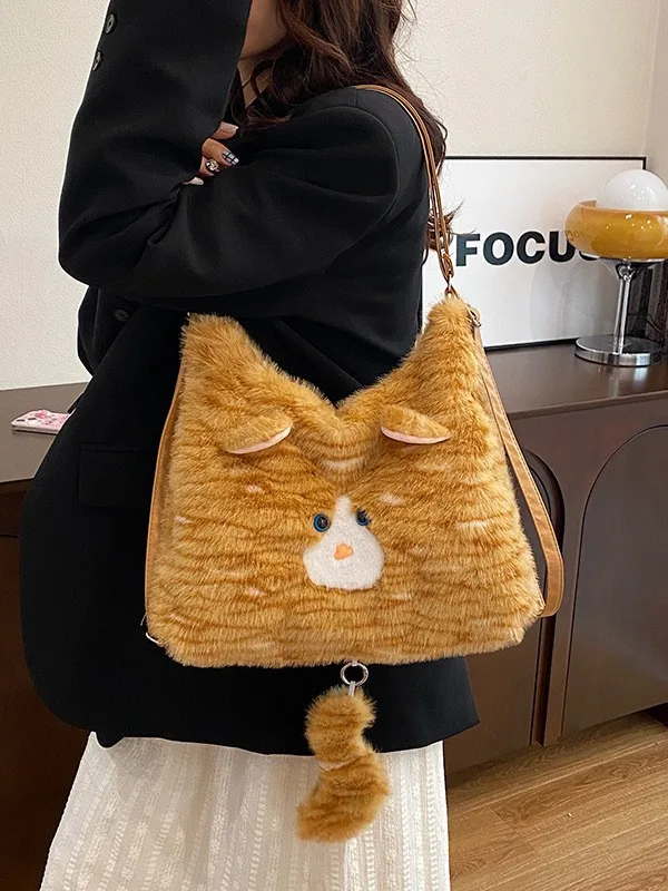 custom logo Plush and Cute cat Underarm Bag for Women 2026 New Winter Backpack Large-capacity Tote Bag