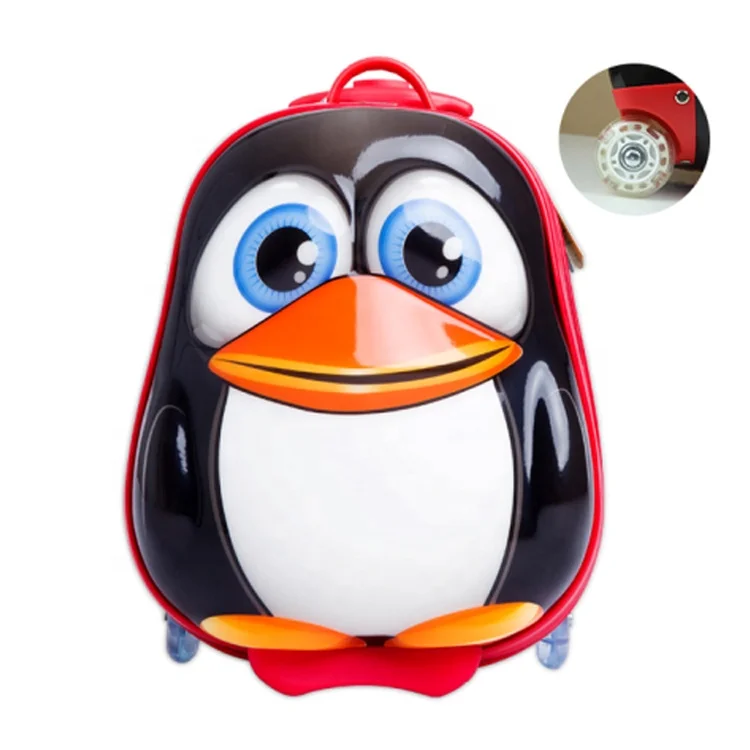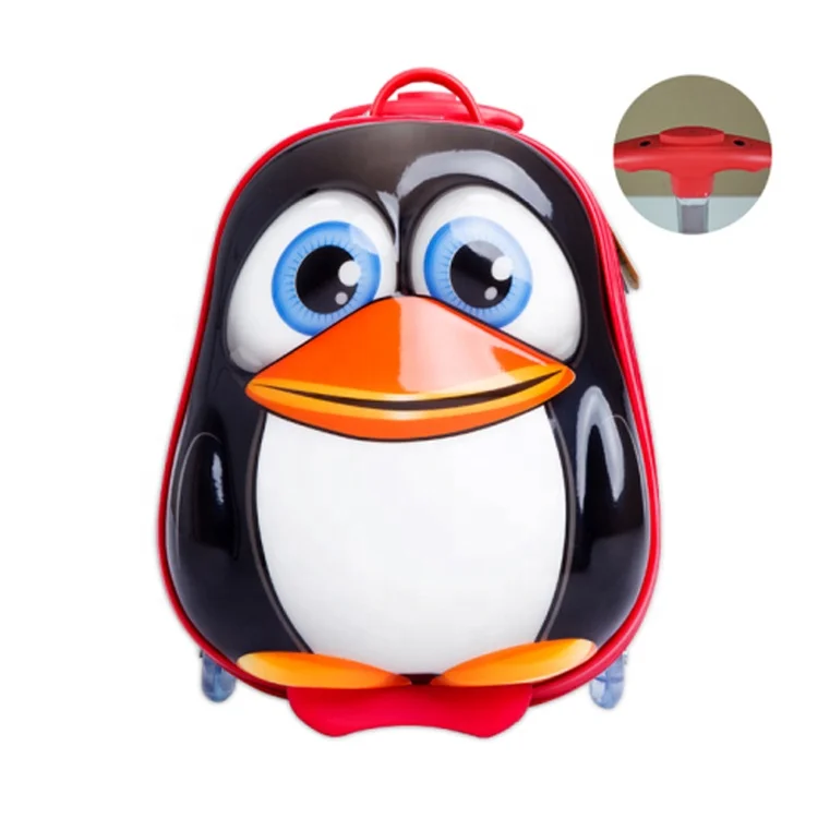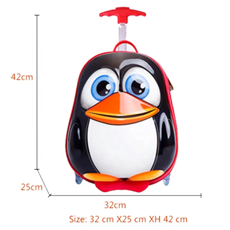 Promotion Stocked Goods Wholesale 14 Inch Cute Penguin Cartoon Kids Suitcase Carry on Luggage on Wheels