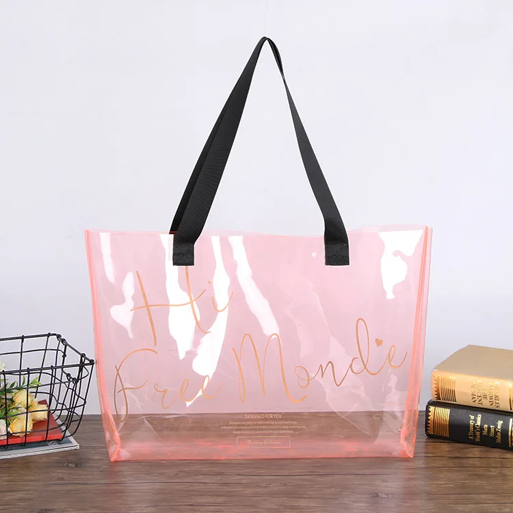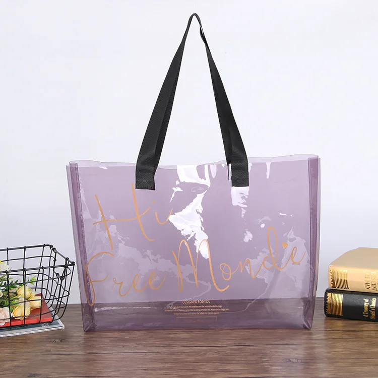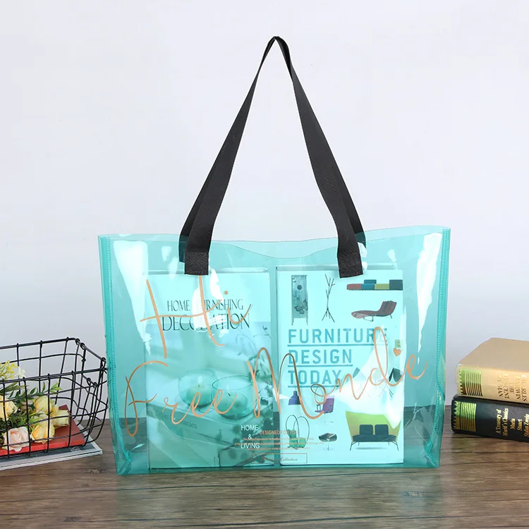 New Style PVC Tote Bag Large Capacity Transparent Clear Jelly Shopping Bags for Beach Travel Grocery Promotional Gift Bag
