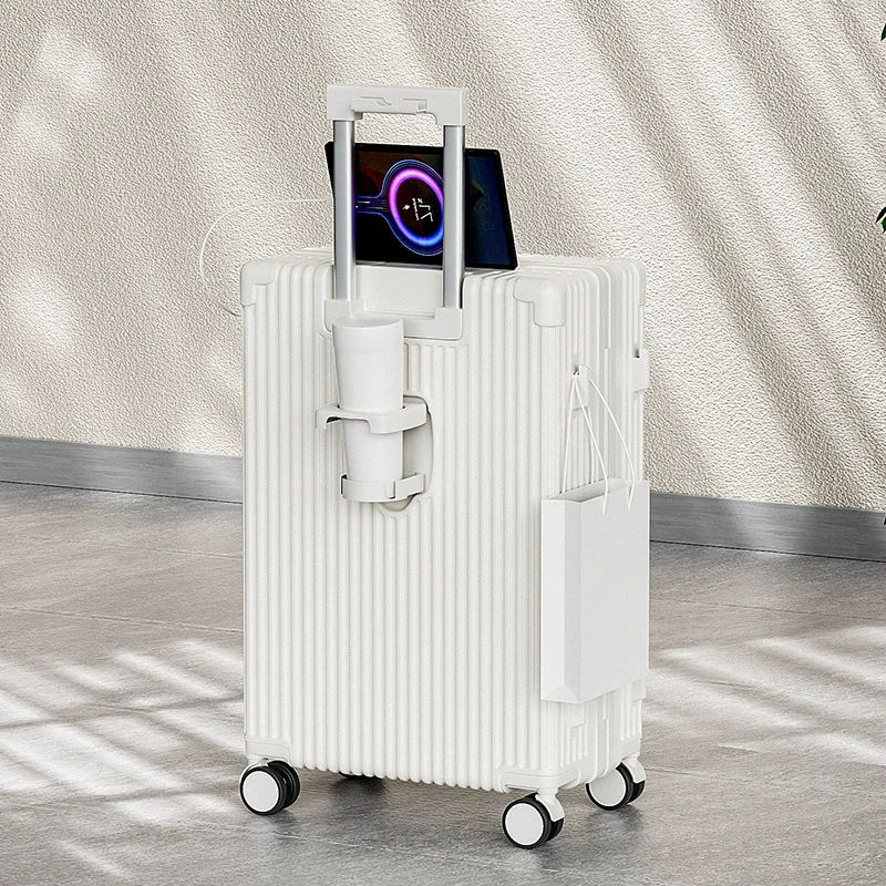 Factory Price of Trolley Luggage for Students Travel Large Capacity Fresh Hard Shell Luggage Suitcase With Cup Holders