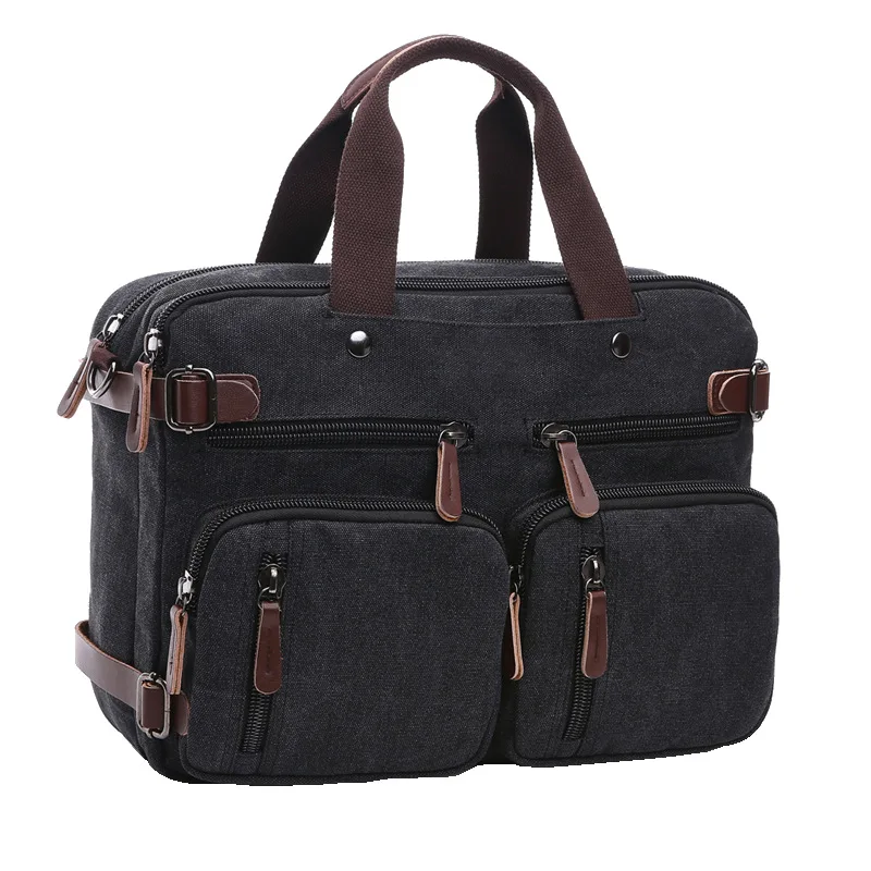 Hot Selling Men Messenger Bag with Wholesale Price Large Capacity Convertible Canvas Handbag for Travelling Retro Briefcase Bag