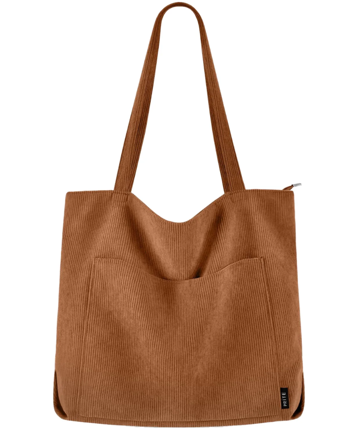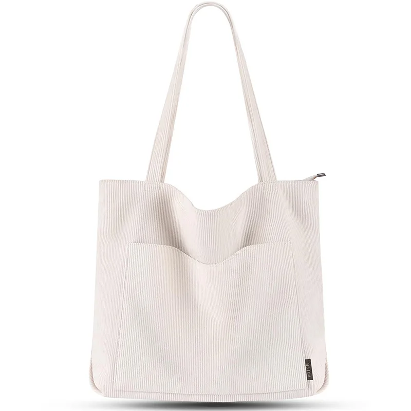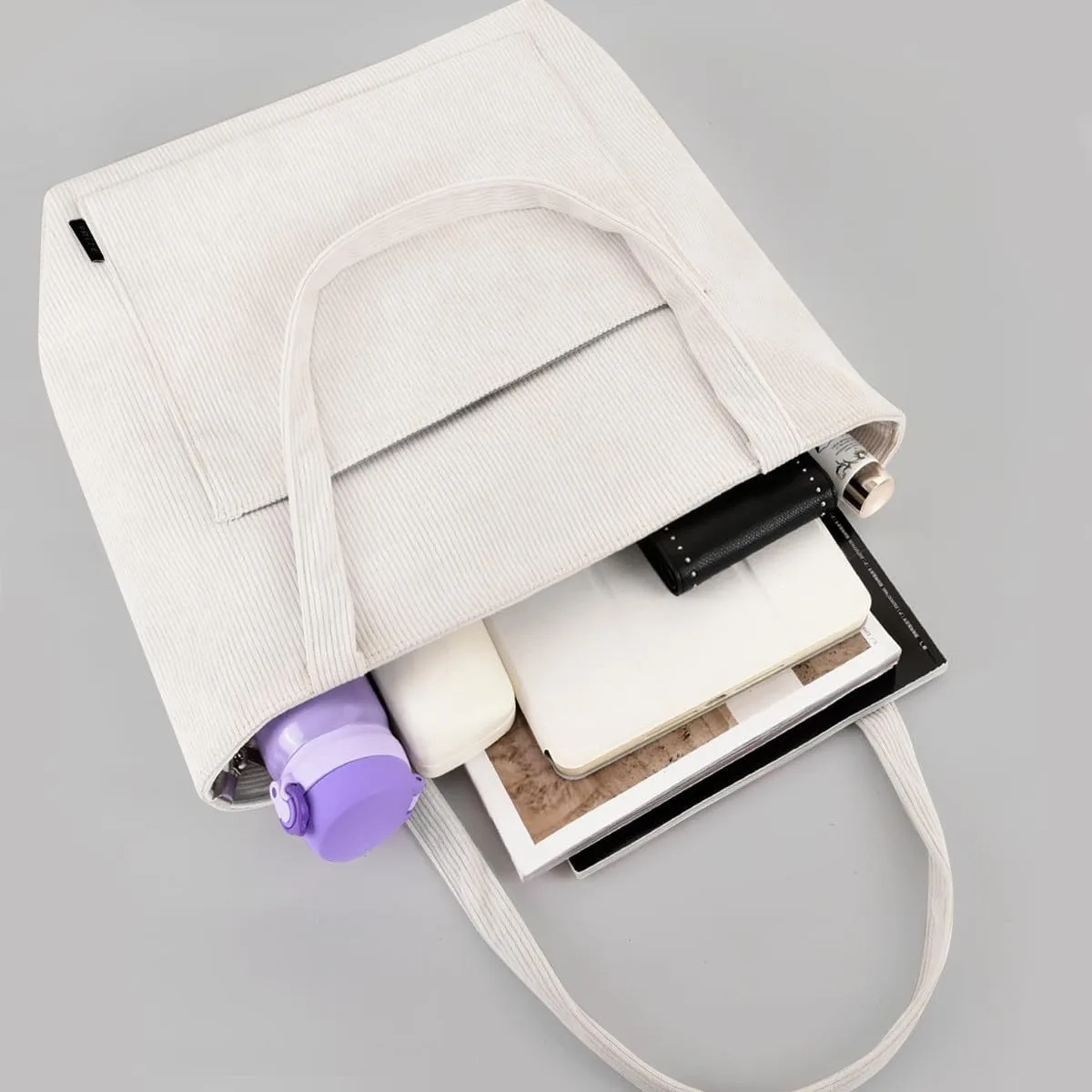 Factory Wholesale Eco-friendly Tote Bag with Pockets and Zipper Reusable Corduroy Shoulder Bag for Female Shopping Pouch Bag