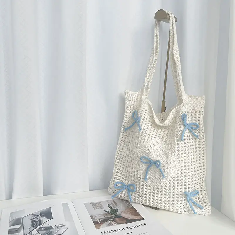 New Arrivals Tote Bag for Women Ballet Style Handmade Beach Bag High Quality Portable Knitted Shoulder Bag for Shopping Leisure
