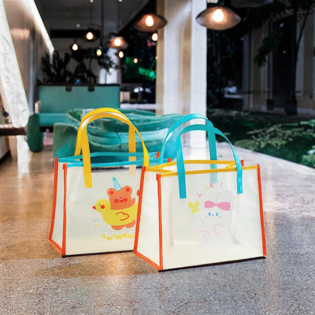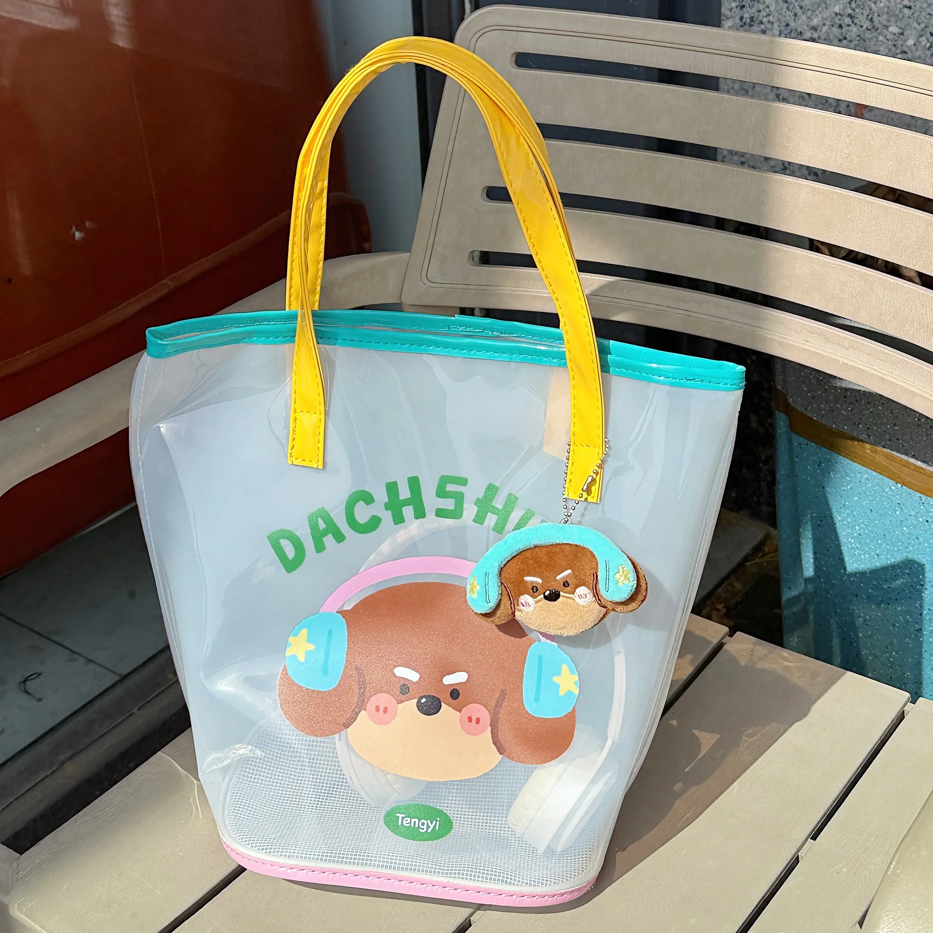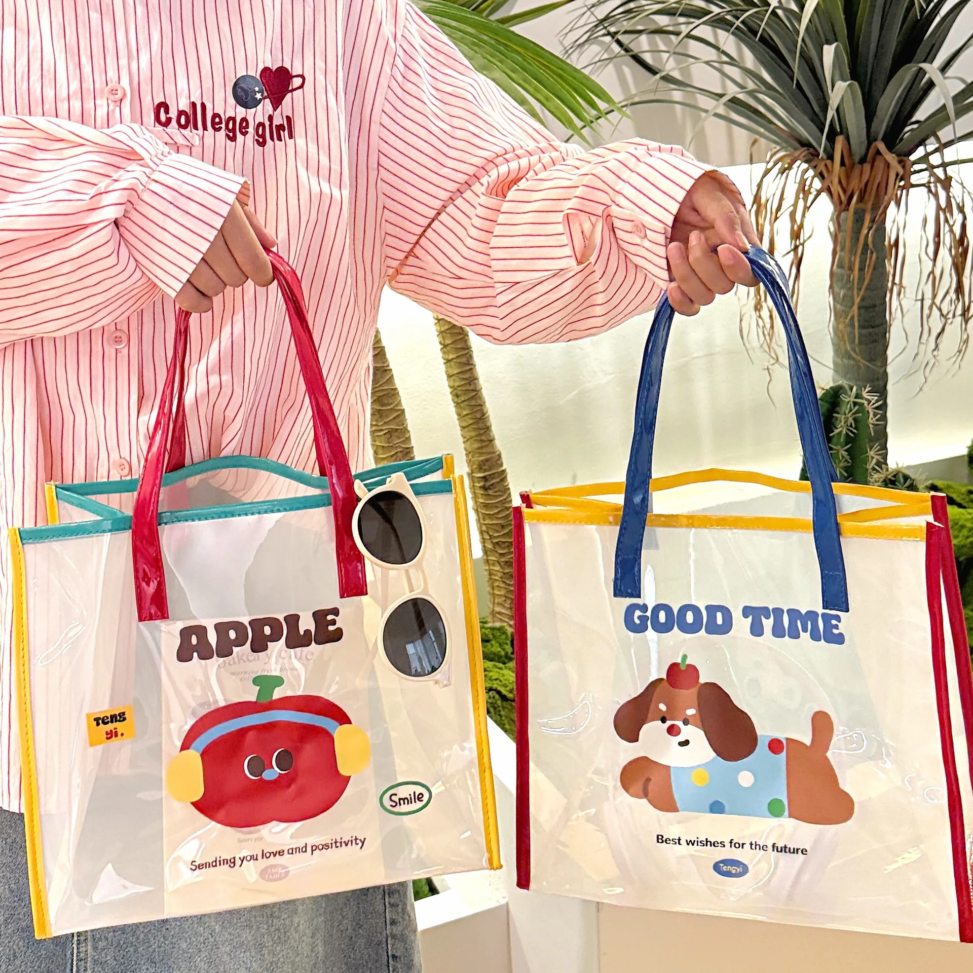 Wholesale Korean Style Carton Jelly Candy Handbags Large Capacity Transparent PVC Tote Bag for Summer Waterproof Beach Bag