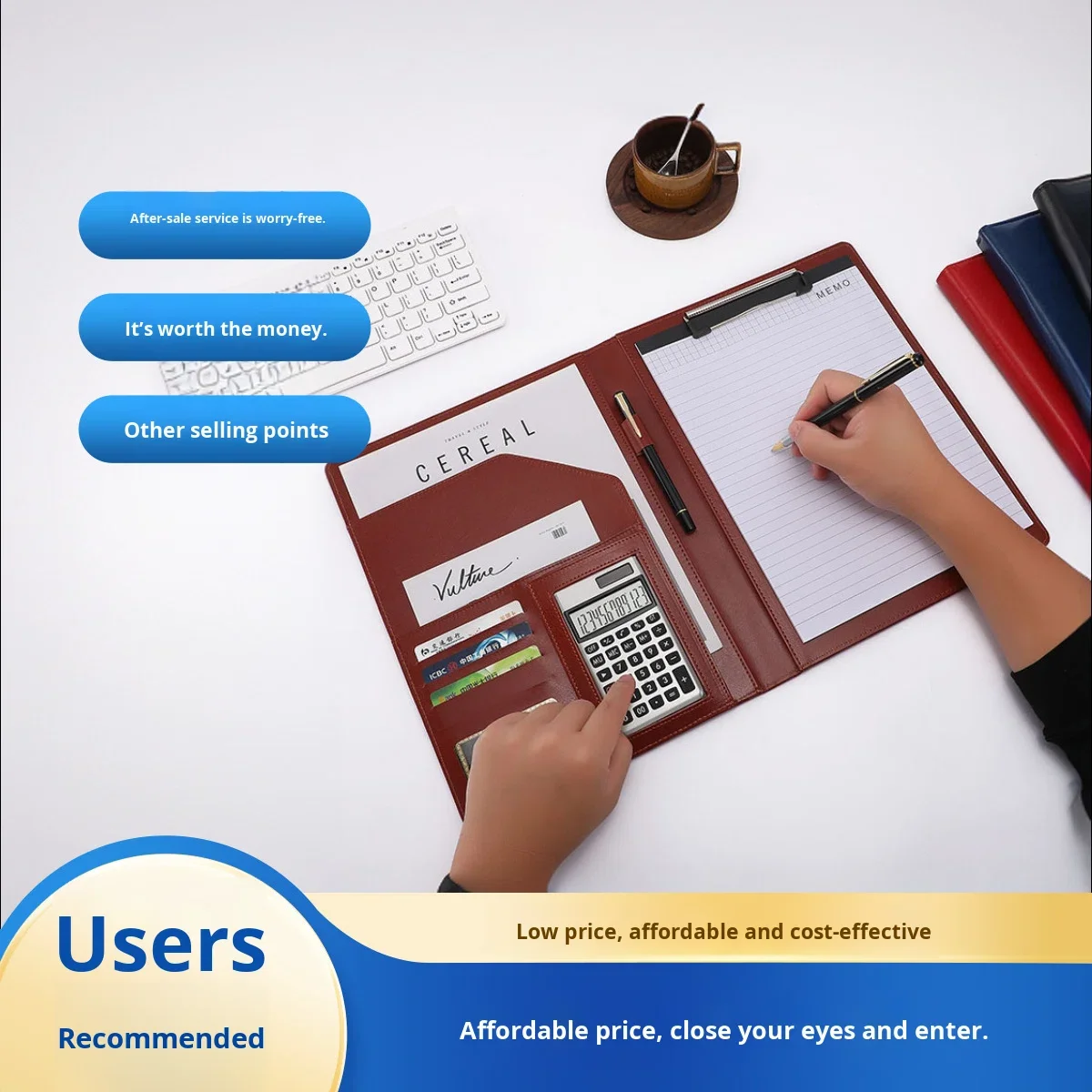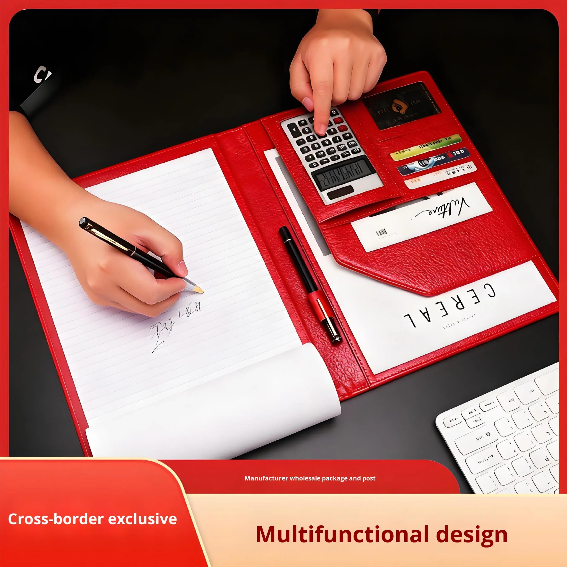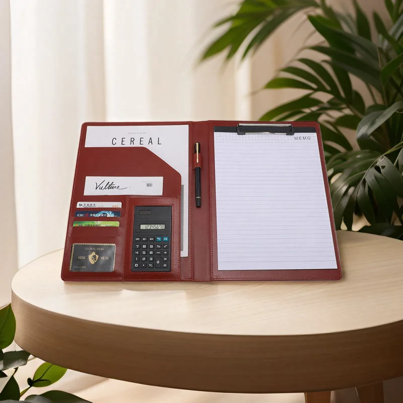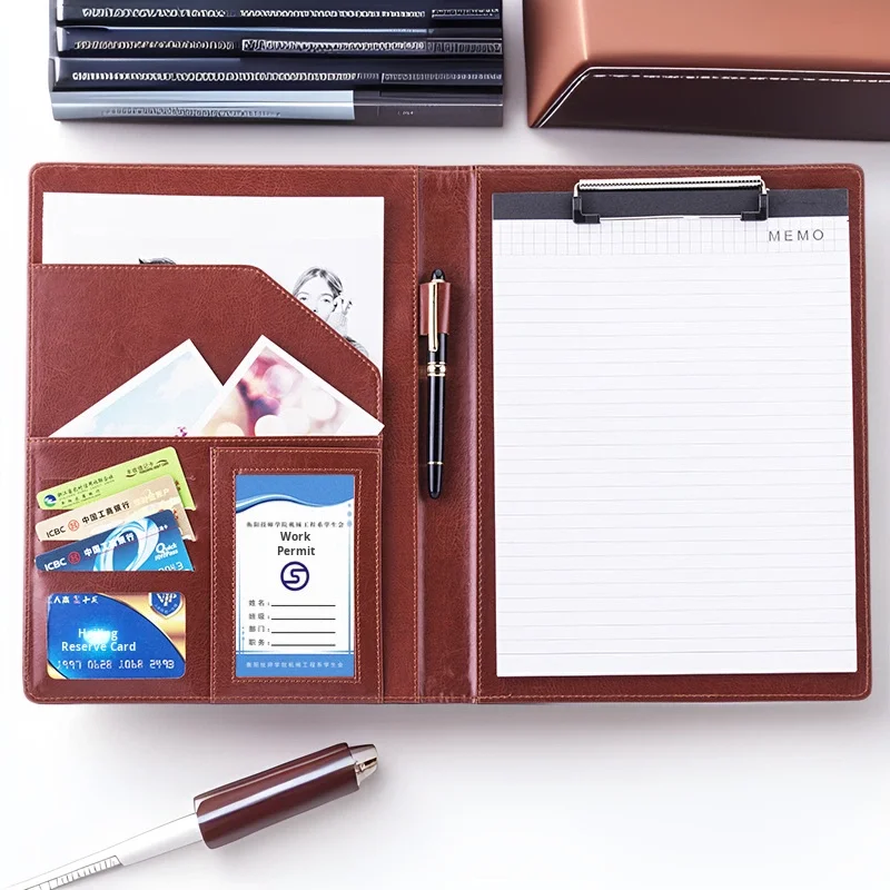 A4 Multifunctional Leather Open Closure Custom Business Negotiation Exhibition Meeting Pad Contract Document Manager Folder