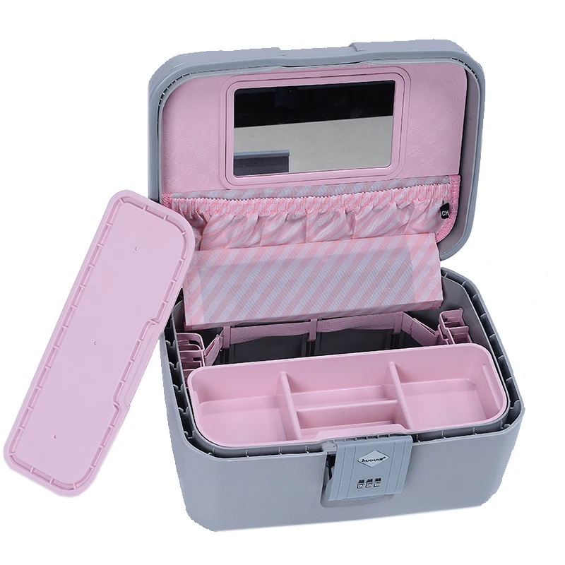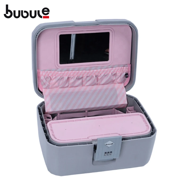BUBULE 14" Fashion Lock PP Cosmetic Box Bag Makeup Case with Mirror Customized Logo Hasp Closure