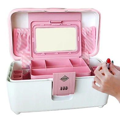 14 Inch Fashion PP Traveling Jewelry case Hardshell Cosmetic case with Mirror Durable Lightweight Carrying Makeup case