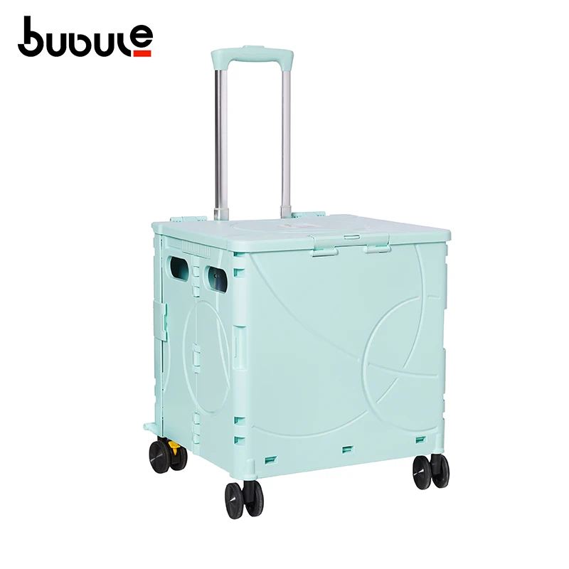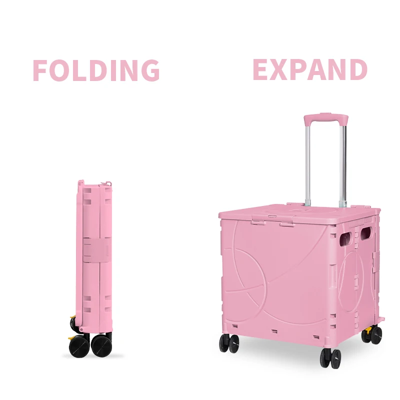 PP Material Rolling Hard Shell Supermarket Trolley Foldable Shopping Cart 48L Hand Trolley Carton Folding Plastic Basket 55CM