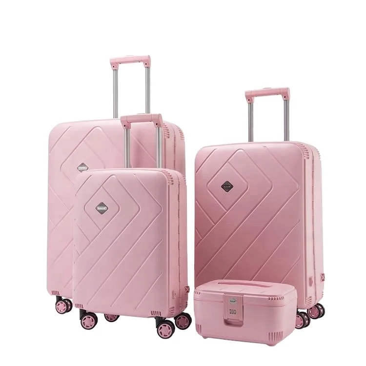 Fashion Hot Selling PP 20 Inch 4 Spinner Wheels Aluminum Trolley Luggage Set with Combination Lock 4 Pieces Travel Suitcase