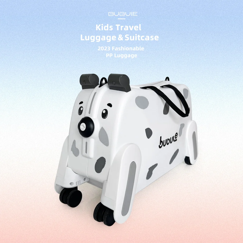 Dog Design Ride on Suitcase PP Lightweight Children Luggage with Large Capacity Lock Suitcase Easy to Open