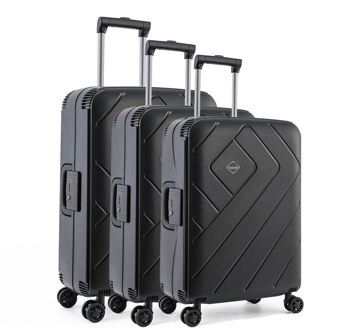 PP Fashion Unisex 3-Piece Suitcases Luggage Set with 20/24/28" Sizes TSA Lock Aluminum Trolley 4 Spinner Wheels Carton Packed