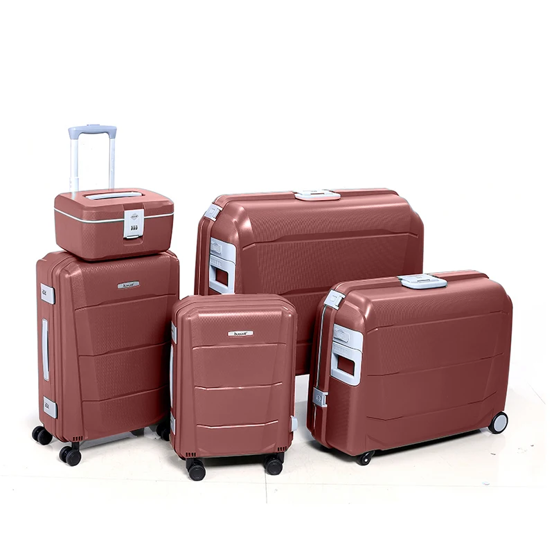 AX501 Bubule OEM Spinner Luggage Sets 5-Piece with Aluminum Trolley System Combination Lock Makeup Box