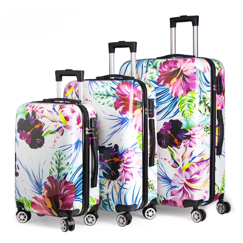 Hard Shell Custom Hard Shell 4 Wheels Luggage Bag Travel Suitcase Sets of 3 Flower Beautiful Trolley case