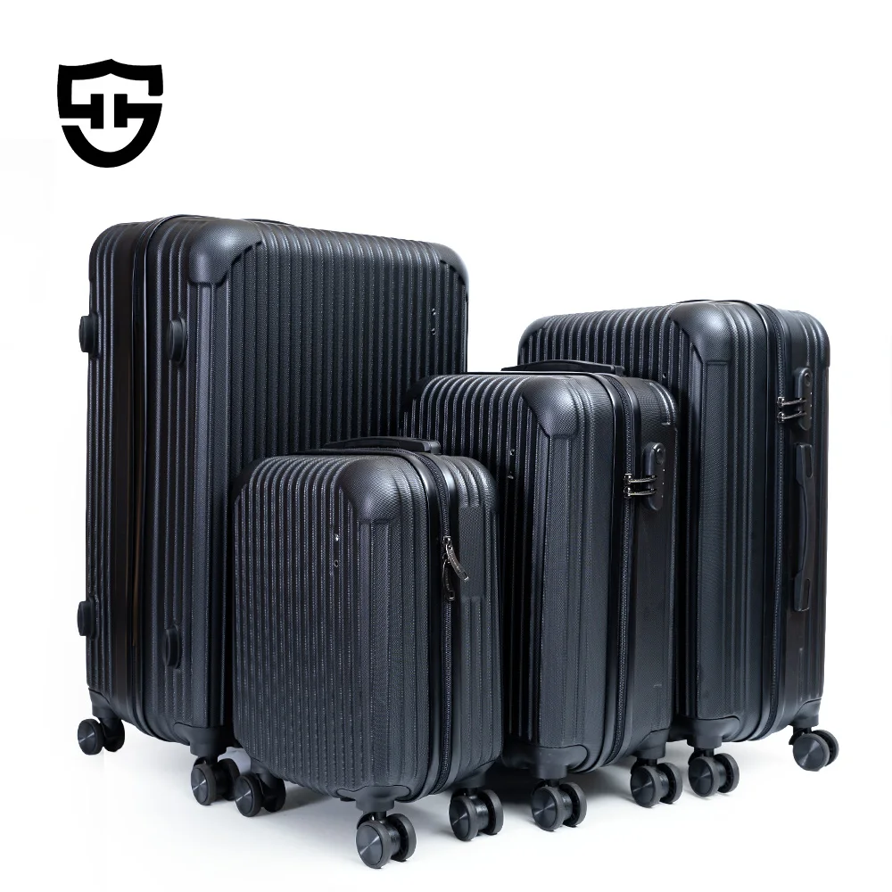 Wholesale Large Capacity Unisex Luxury Black Luggage Sets Lightweight Anti Crack 4 Piece Trolley Luggage Set 16/20/24/28 Inch