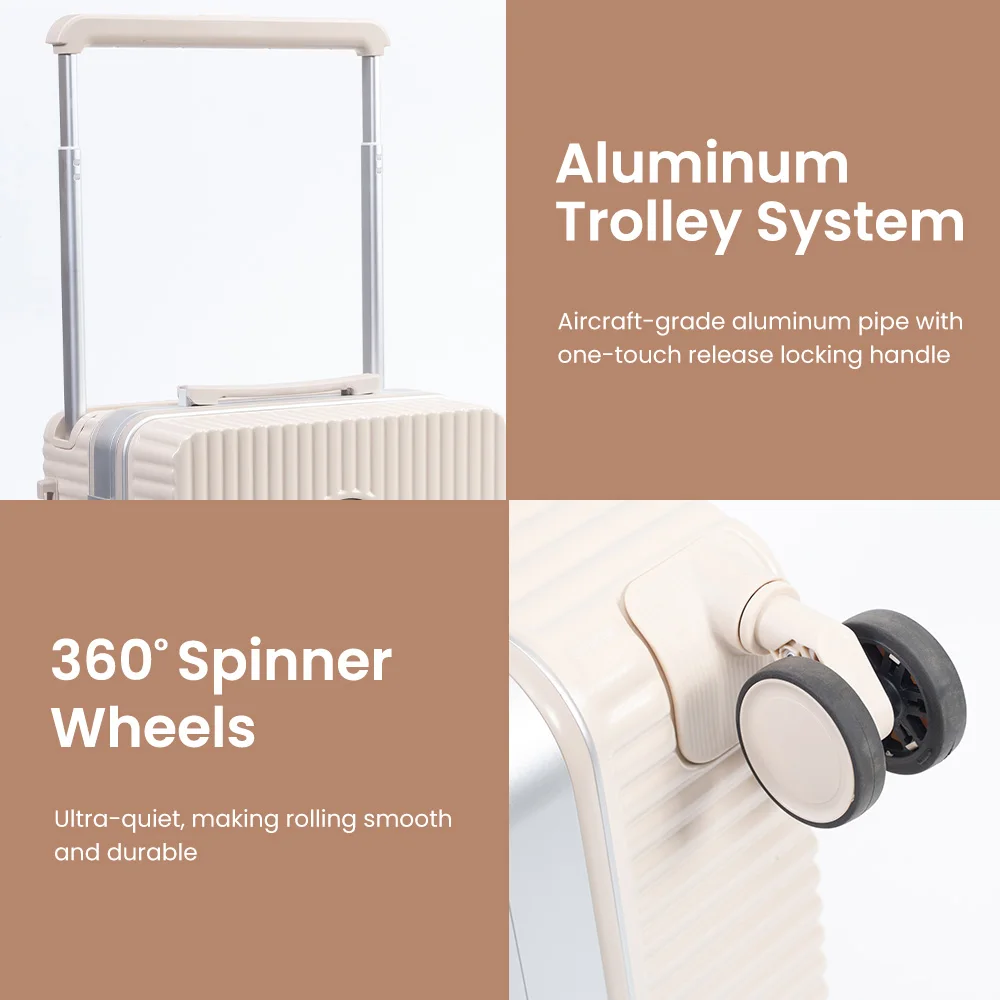 Fashionable BSCI Spinner 4 Wheels Trolley Bag Luggage Set PC Material With Cup Holder Unisex Luggage for Travel