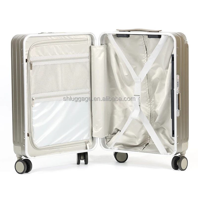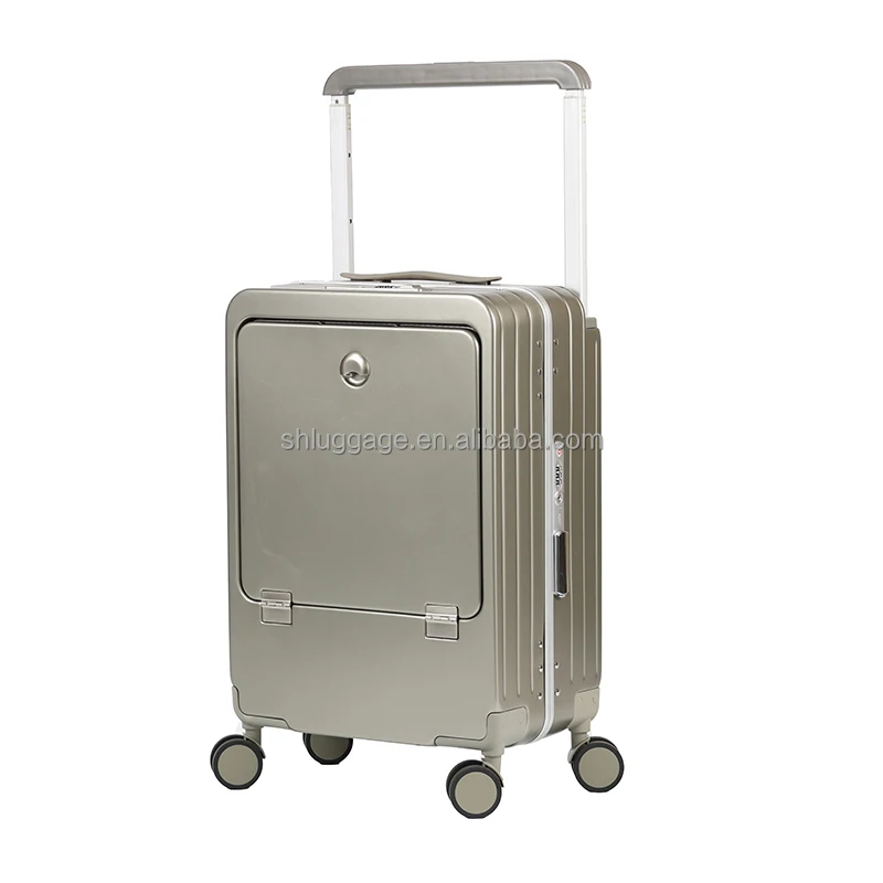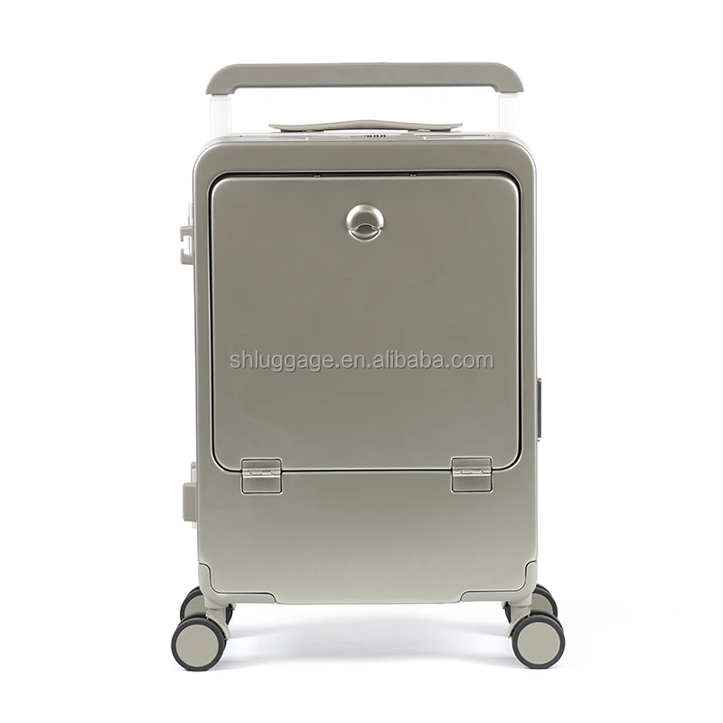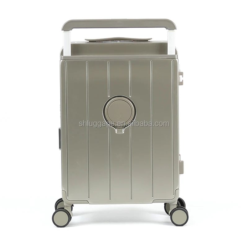 New Arrival Unisex Large Size Hard Shell Cabin Luggage Front Opening Portable Carry-On Suitcase with Cup Holder