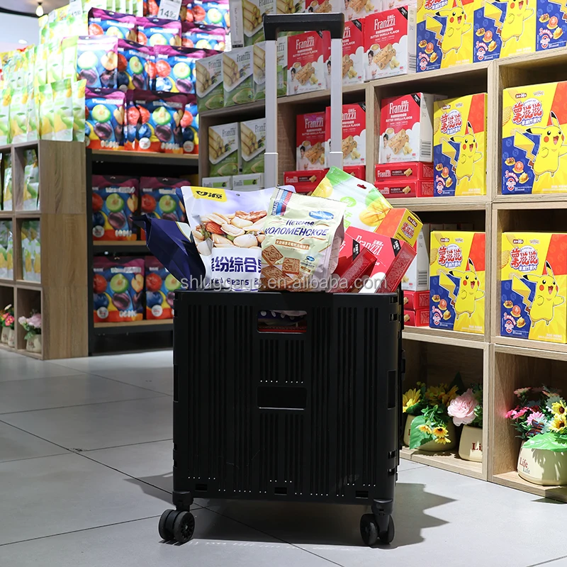 Folding Utility Cart Portable Rolling Crate Handcart Shopping Trolley Collapsible Tool Box Durable PP Wheels Customizable OEM