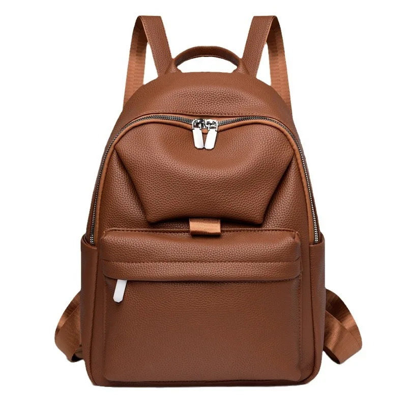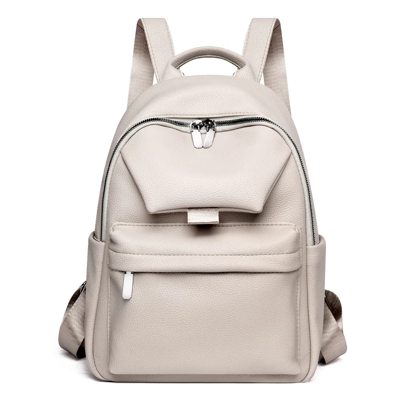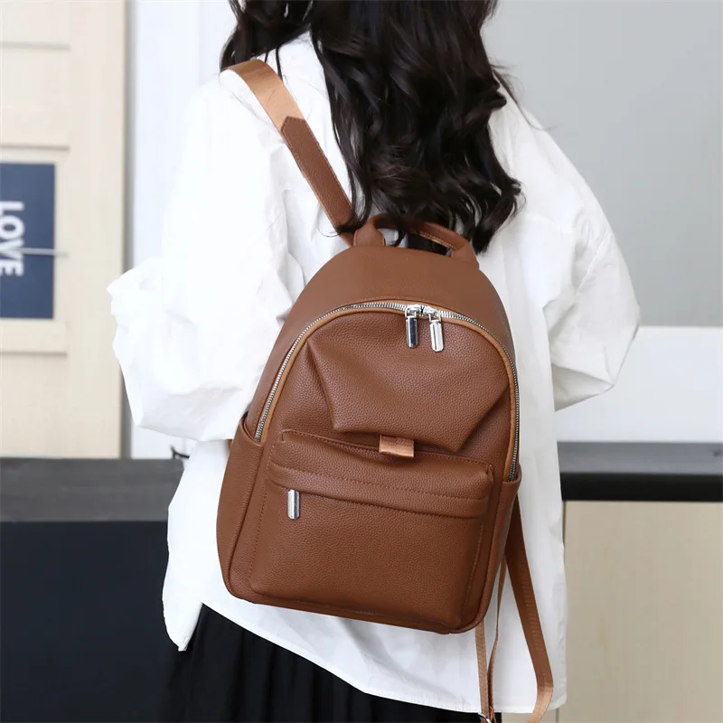 New Design Outdoor Lightweight Lady's Backpack Large Capacity Litchi Pattern Student PU Leather Nylon Lining Zipper Closure