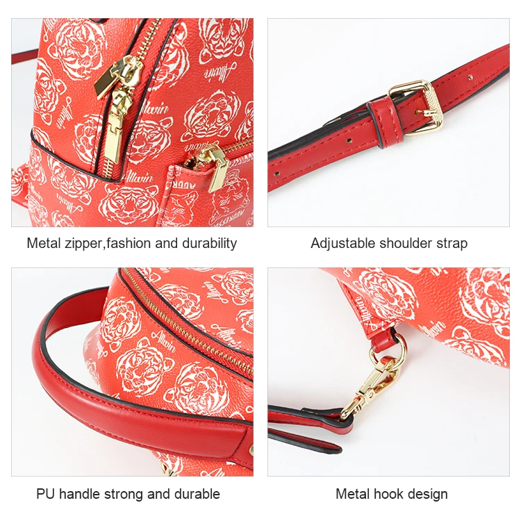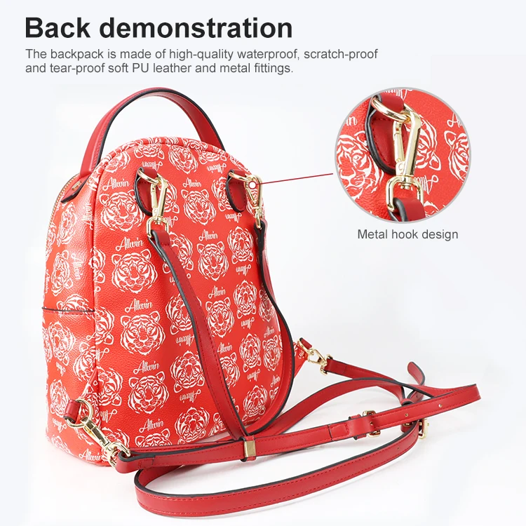 Fashion Custom Waterproof Cartoon Vegan PU Laptop Versatile Rucksack Leather Backpack Shoulder Straps Zipper Closure Letter