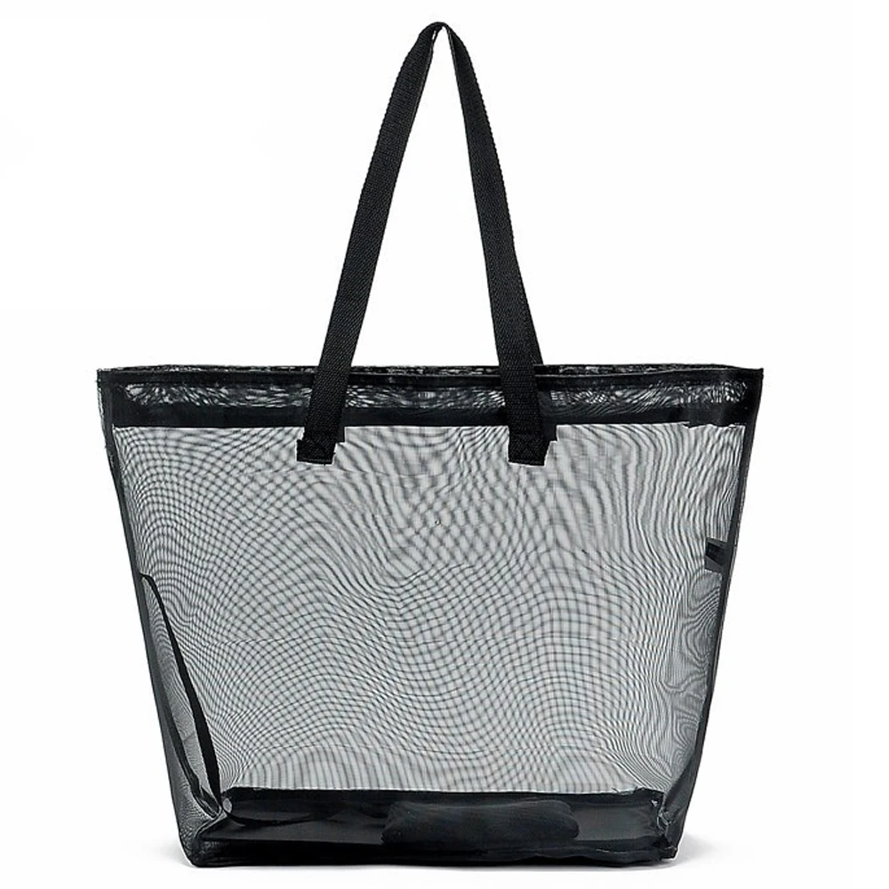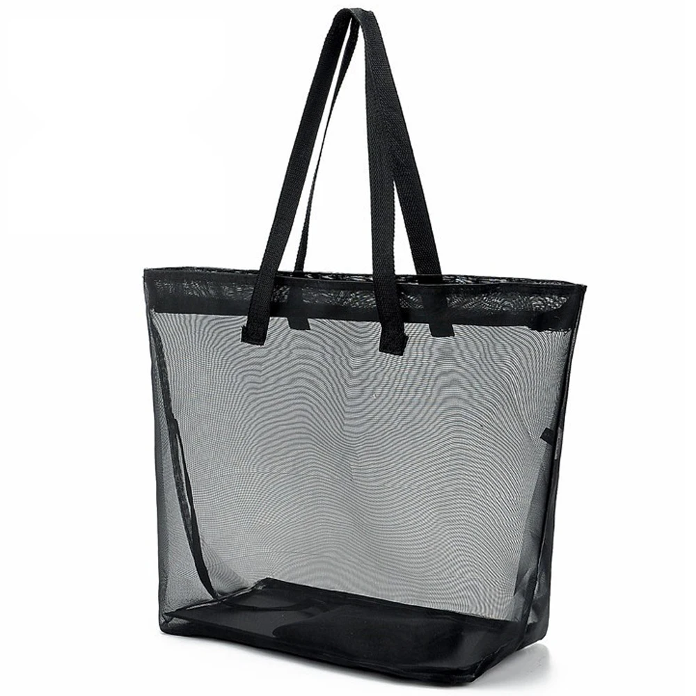 Custom Portable Waterproof Black Mesh PVC Beach Net Tote Bag