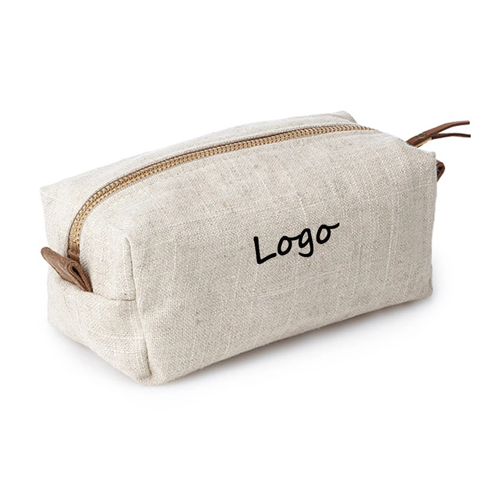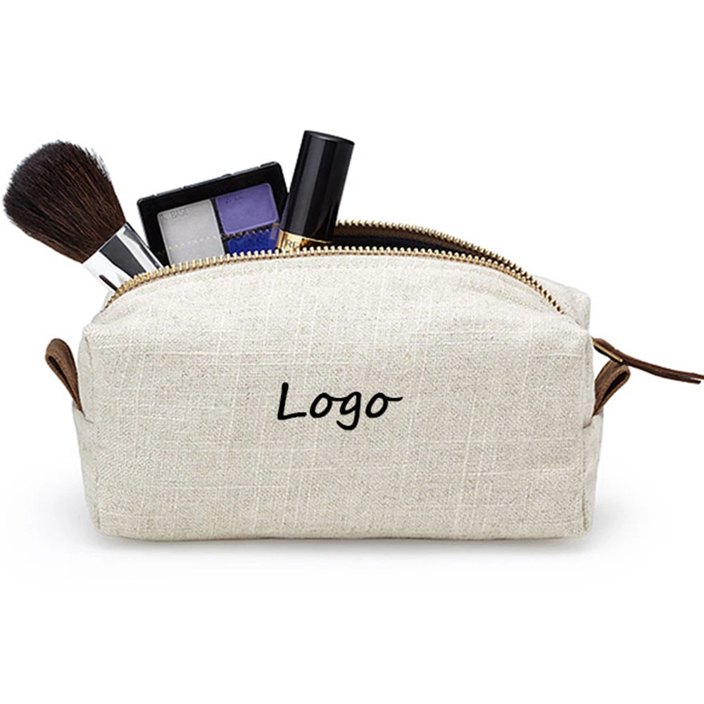 Custom Travel Zipper Linen Blank Wholesale Cosmetic Bag with logo