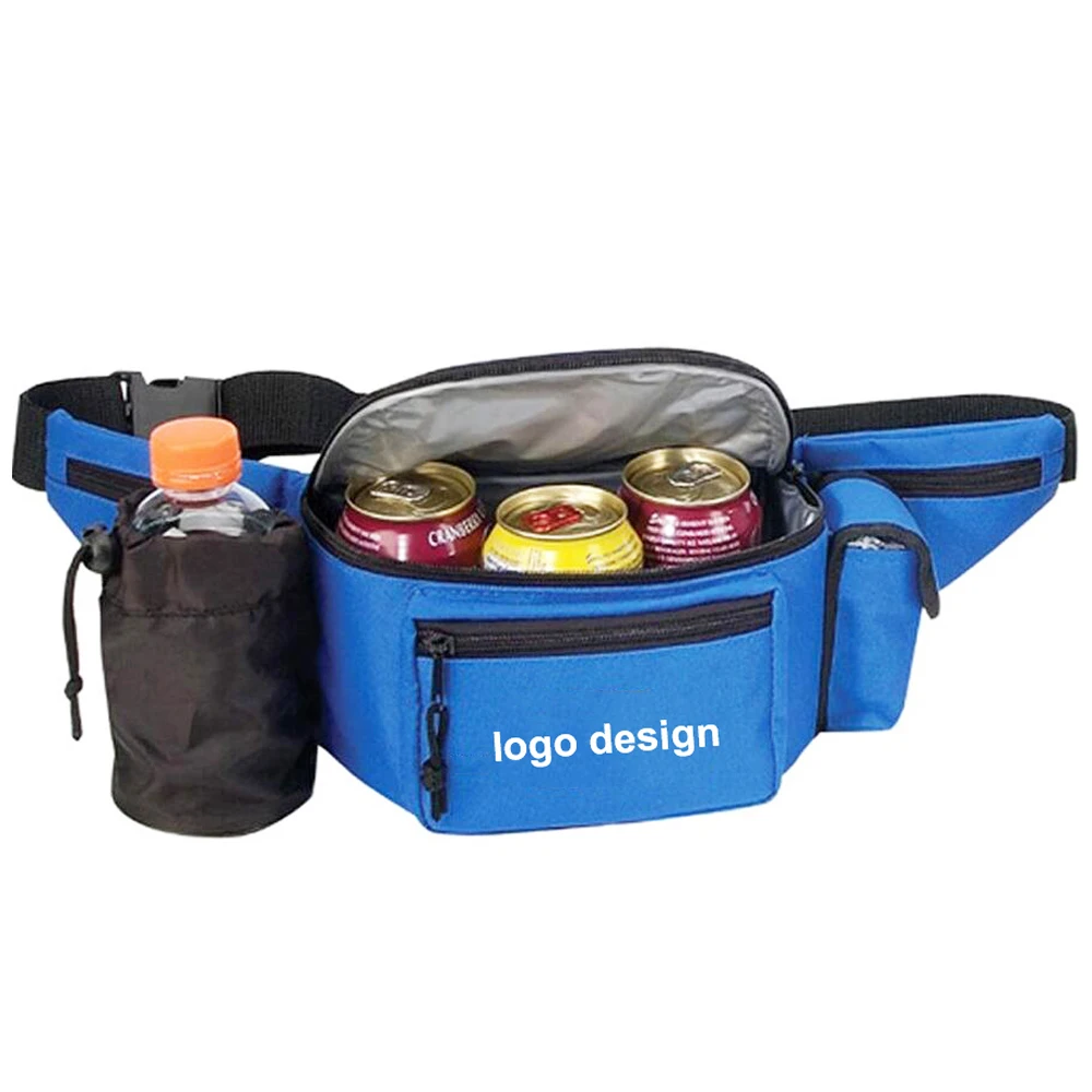 Custom Print Logo Travel Sport Insulated Cooler Fanny Pack With Bottle Holder