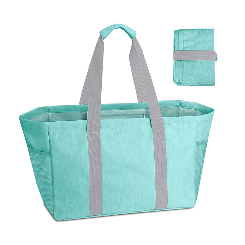 Custom Logo Durable Polyester Foldable Extra Large Eco Storage Tote Grocery Shopping Bags with Letter Pattern Reusable