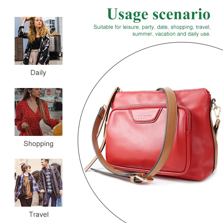 New Vintage Fashion Ladies Luxury Custom Logo PU Leather Zipper Closure Crossbody Messenger Single Shoulder Bag Polyester Lining